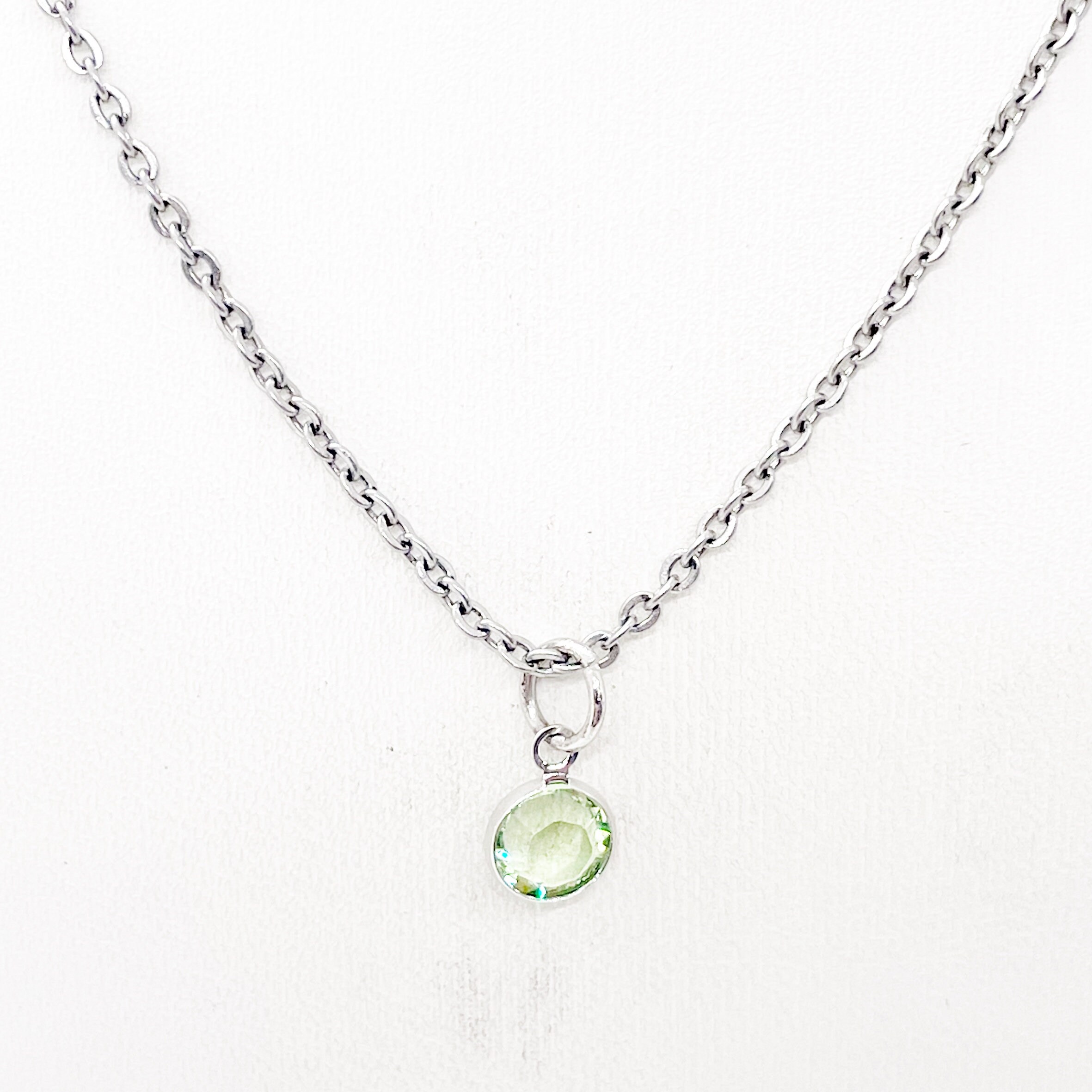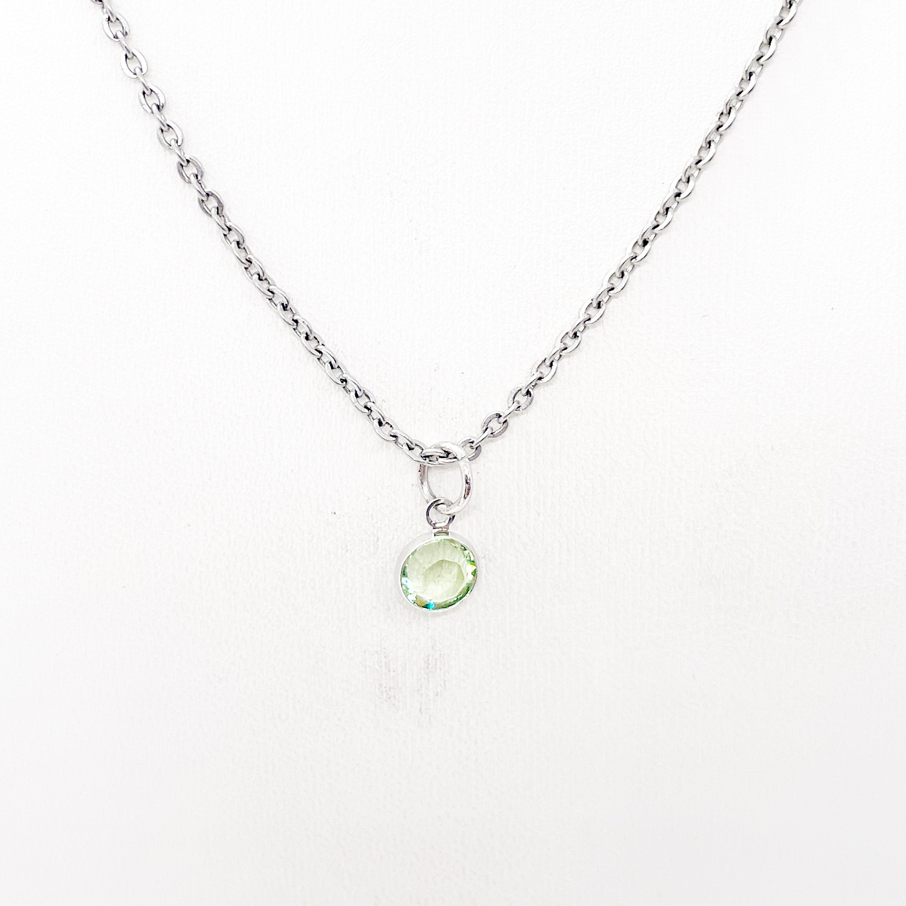 This beautiful necklace would make a wonderful gift. The pendant is a birthstone crystal on it.