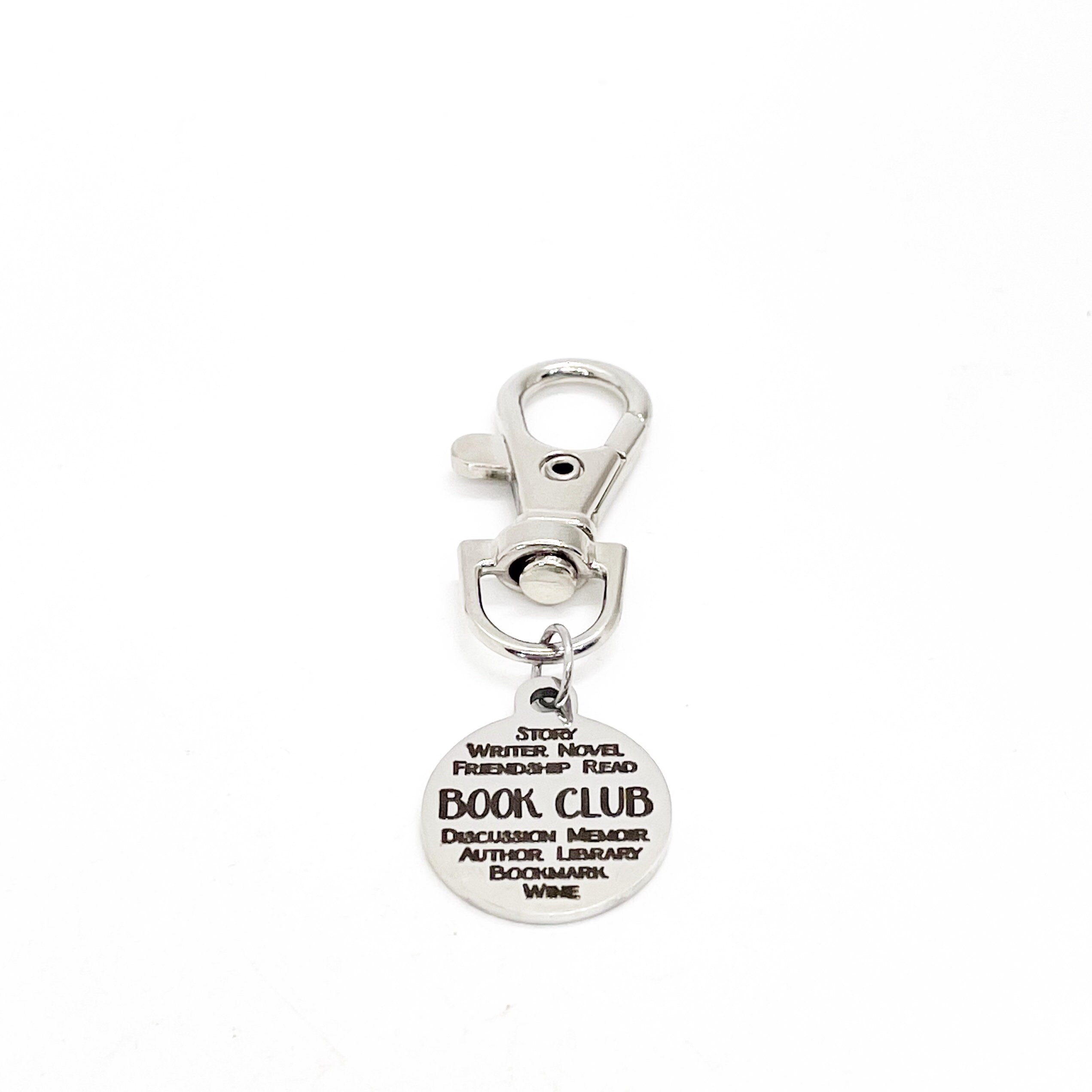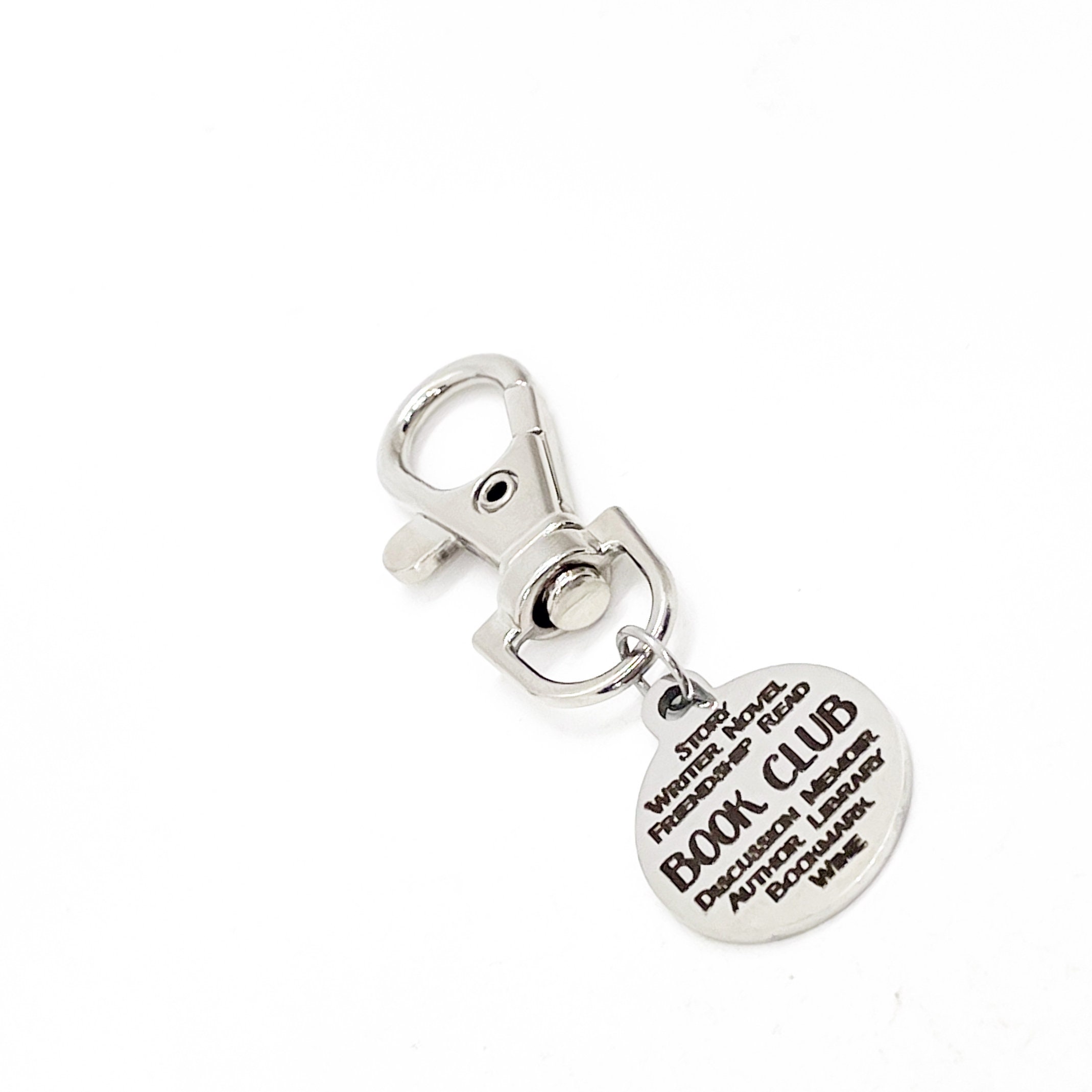 This is a great zipper pull or bag charm gift that has Book Club and related words on it.