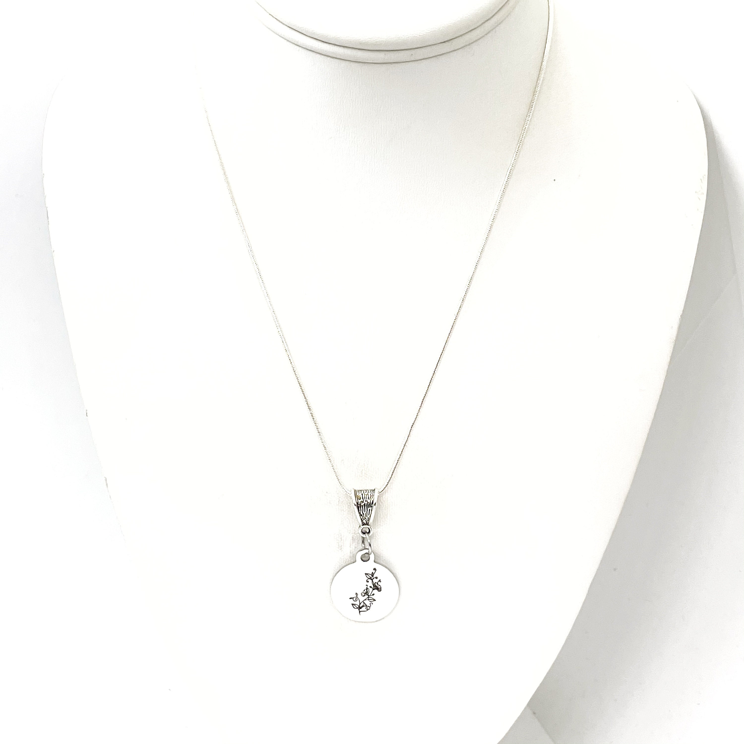 This necklace is available on a silver plated snake chain in your choice of 16, 18, 20, 22, 24, 26, 28 or 30 iInches. The pendant measures approx. 3/4 inch across and is also available for separate purchase if you have another necklace on which you would like to wear it.