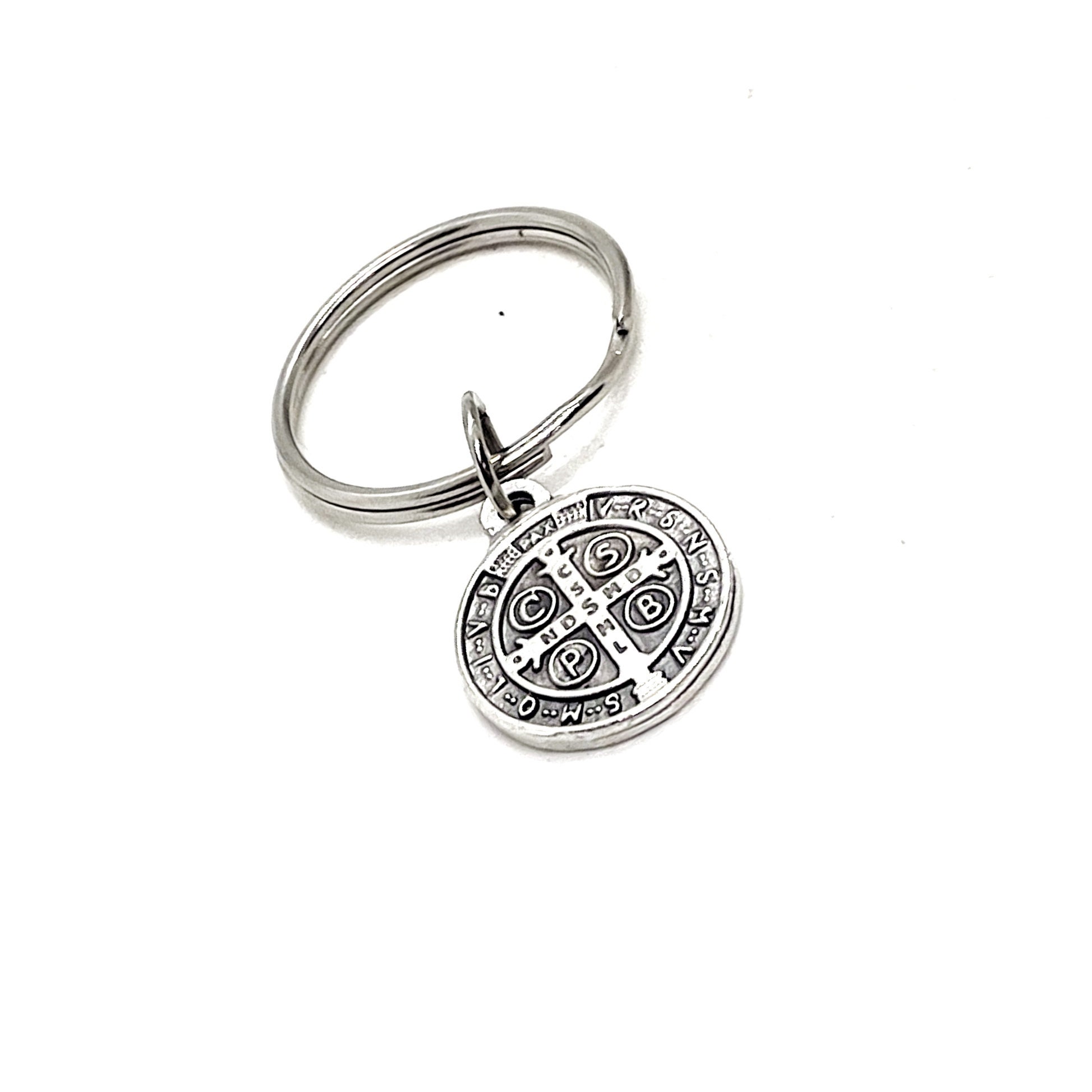 This is a wonderful keychain gift! It has a Saint Benedict charm on it. The charm measures approx. 1/2 inch tall.
