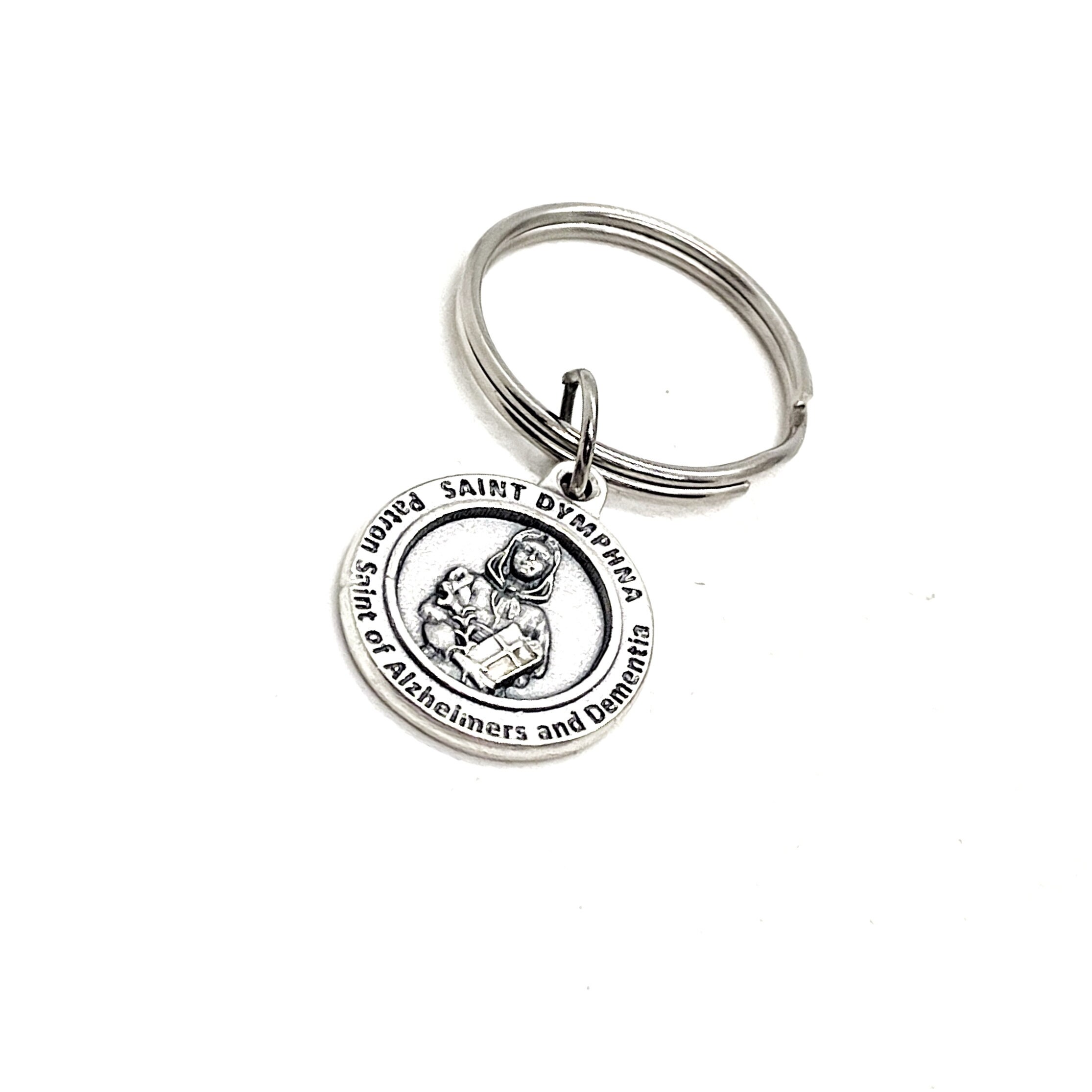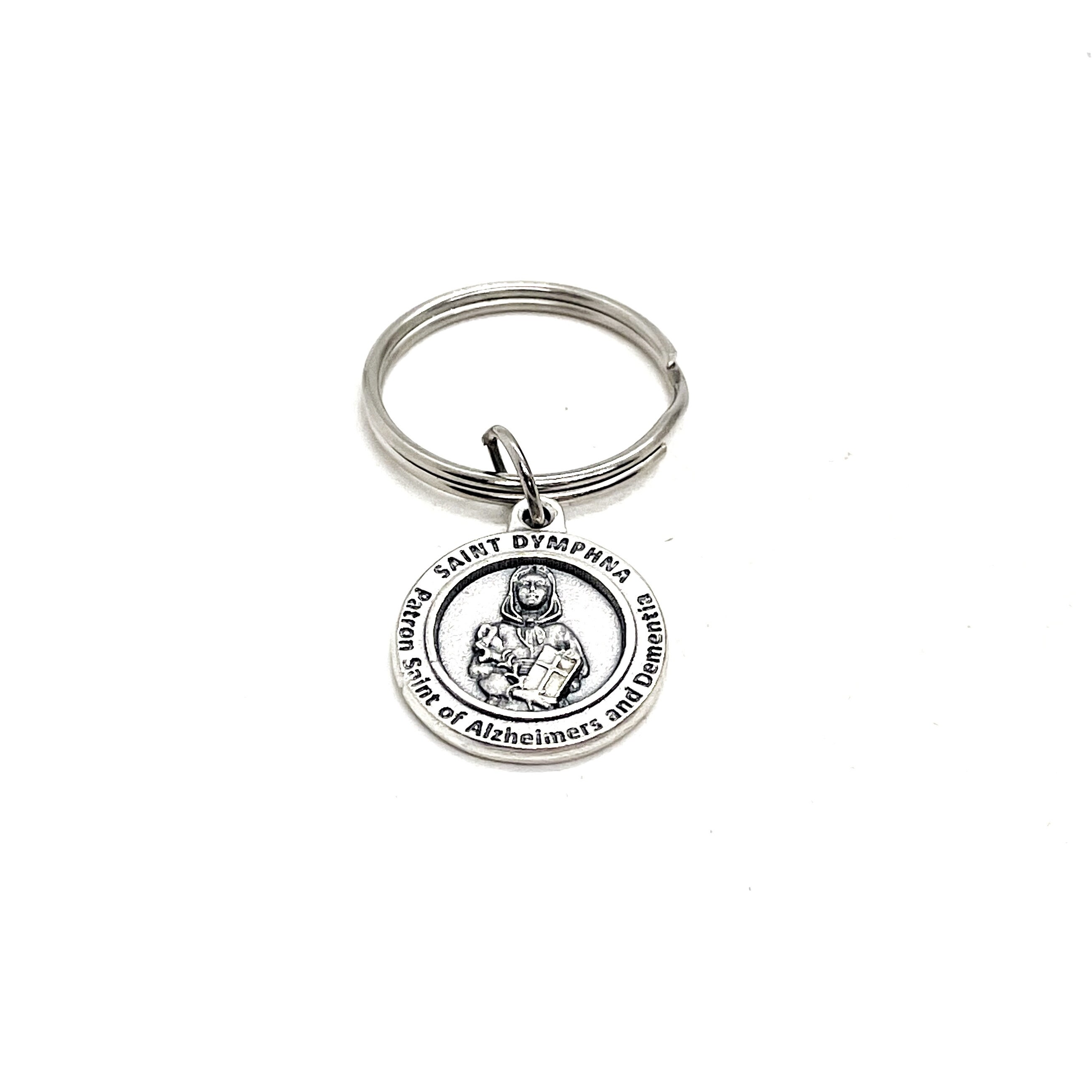 This is a wonderful keychain gift! It has a Saint Dymphna charm on it. The charm measures approx. 1/2 inch tall.