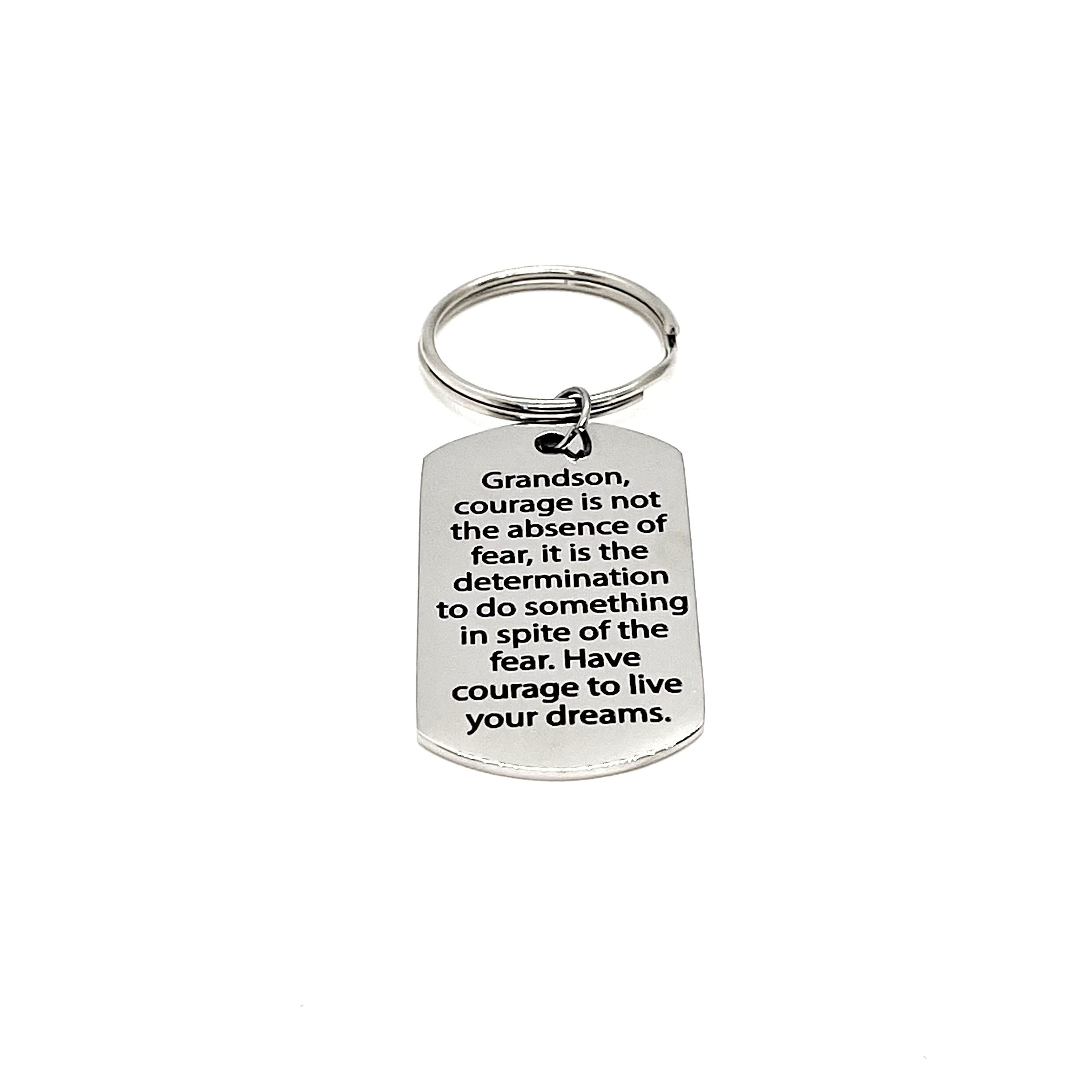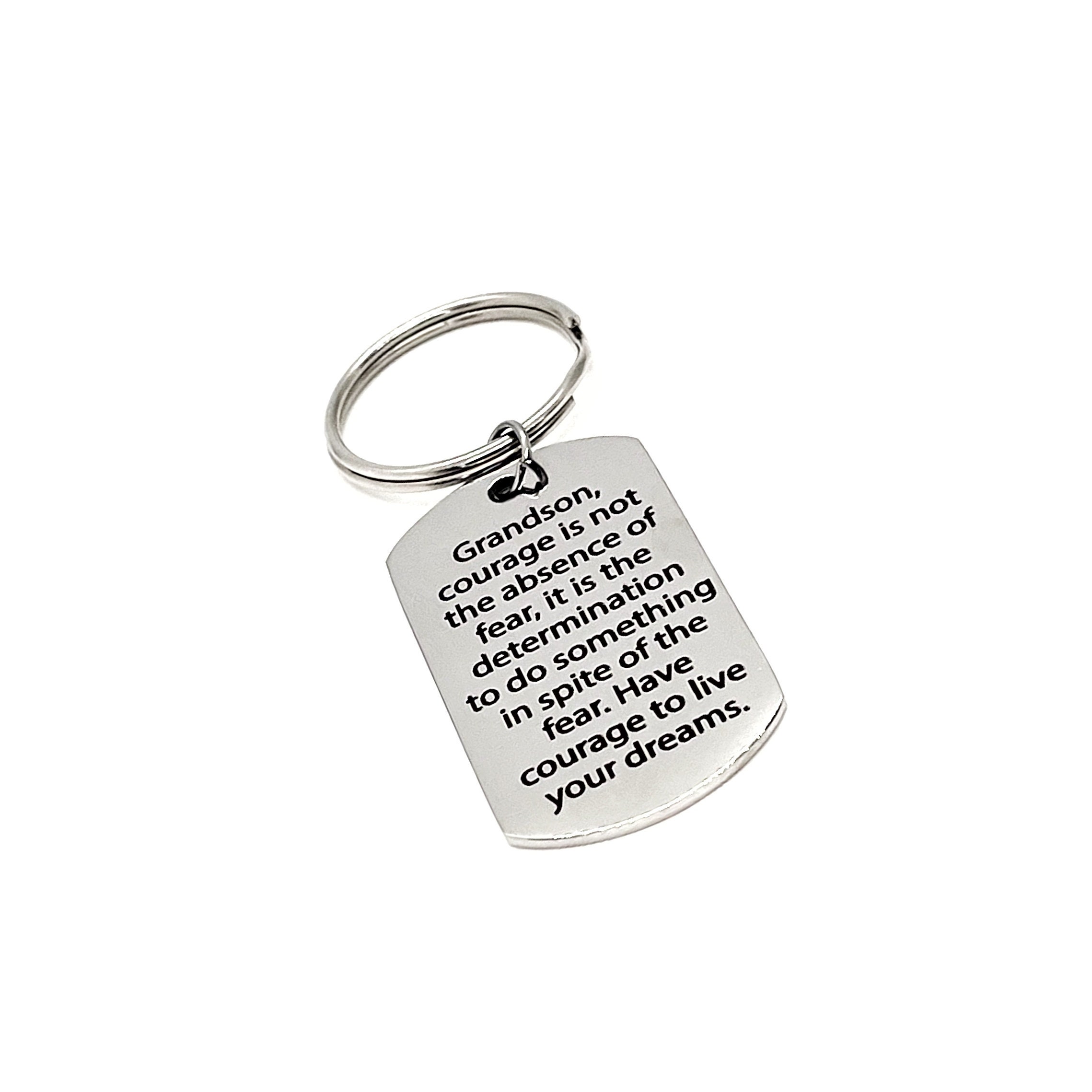 This is a great keychain gift! It has a stainless steel laser engraved charm with the following on it: