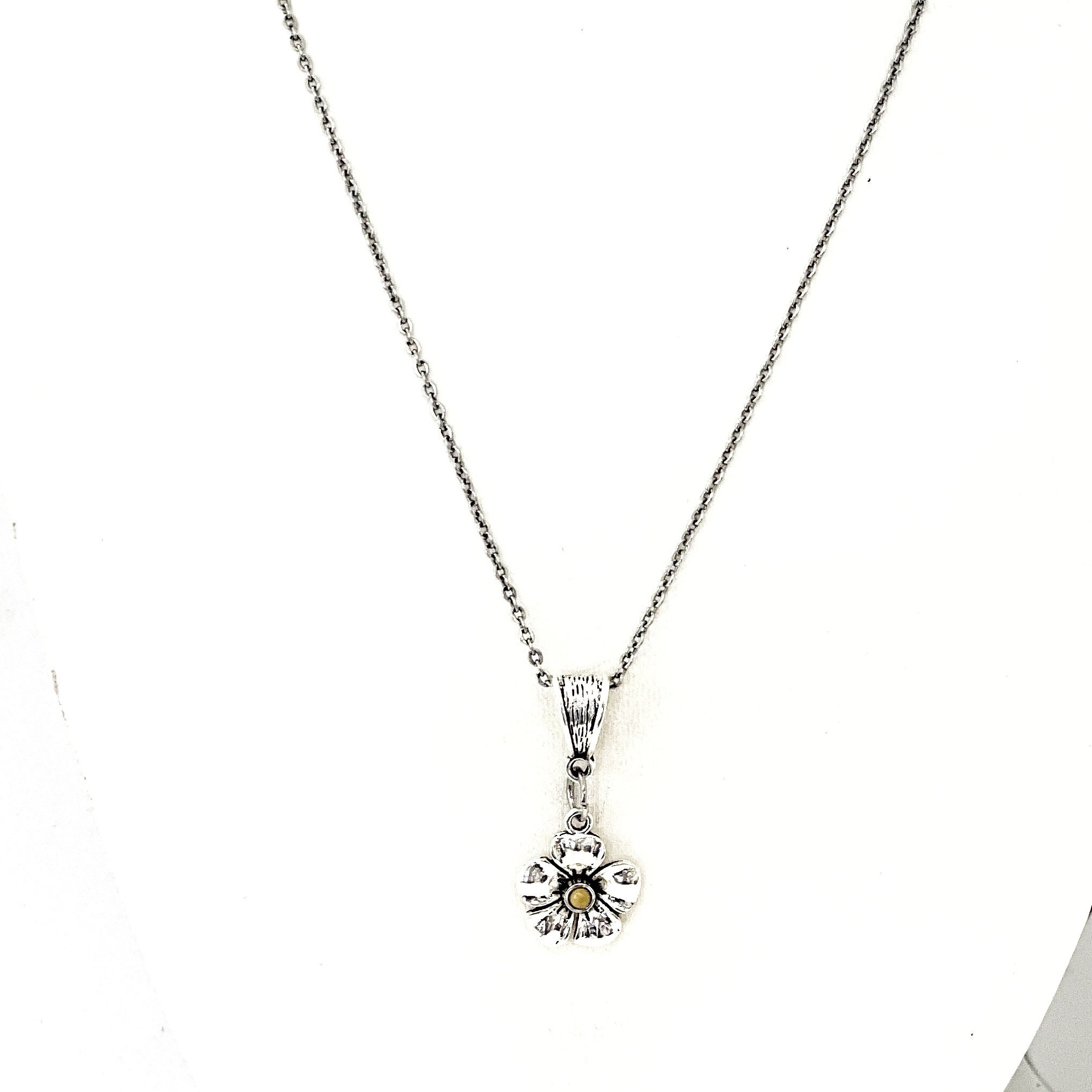 This beautiful necklace has a silver-tone flower pendant with a single mustard seed at the center. It is a great reminder that we need to nourish our faith to make it grow. It is intended to represent the Bible Verse of Matthew 17:20. It also will serve as a reminder to the wearer that with the faith of a mustard seed, we can move mountains!