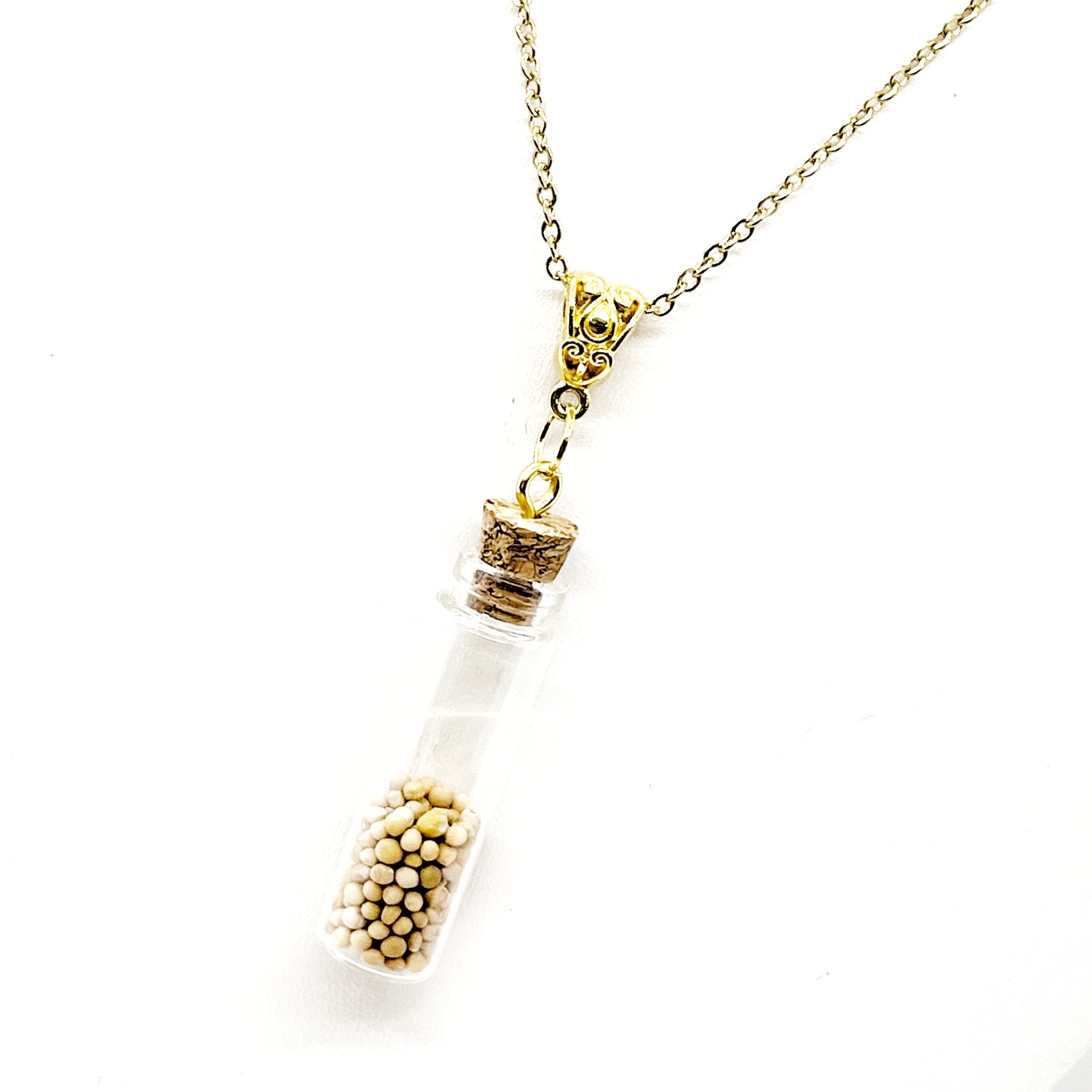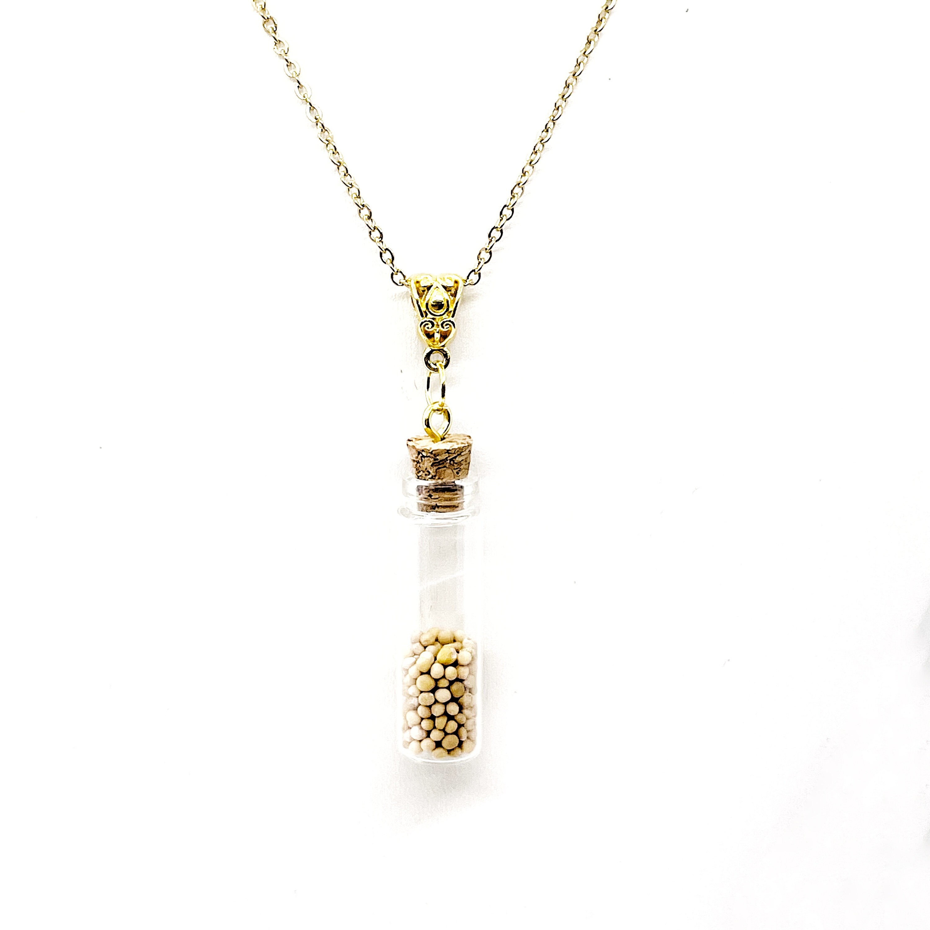 This is a gold-plated mustard seed necklace pendant to represent the Bible verse of Matthew 17:20 and to remind the wearer "if you have faith as small as a mustard seed... nothing will be impossible for you". The pendant includes a mustard seed charm along with a faith charm. This pendant is available on your choice of 16, 18, 20, 22, 24, 26, 28 or 30 inch gold-plated chain. The pendant is also available for individual purchase if you have another chain on which you would like to wear it.