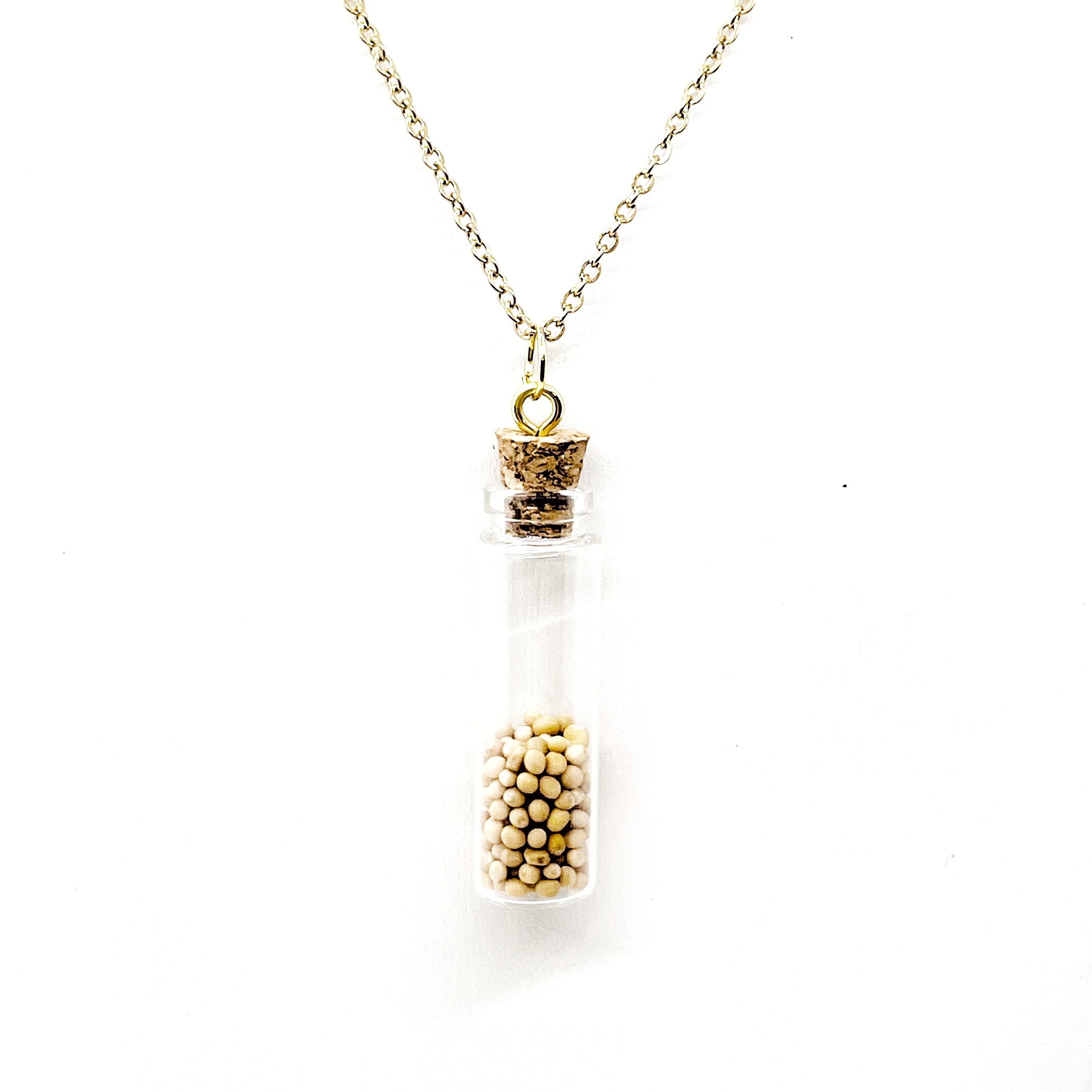 This is a gold-plated mustard seed necklace pendant to represent the Bible verse of Matthew 17:20 and to remind the wearer "if you have faith as small as a mustard seed... nothing will be impossible for you". The pendant includes a mustard seed charm along with a faith charm. This pendant is available on your choice of 16, 18, 20, 22, 24, 26, 28 or 30 inch gold-plated chain. The pendant is also available for individual purchase if you have another chain on which you would like to wear it.