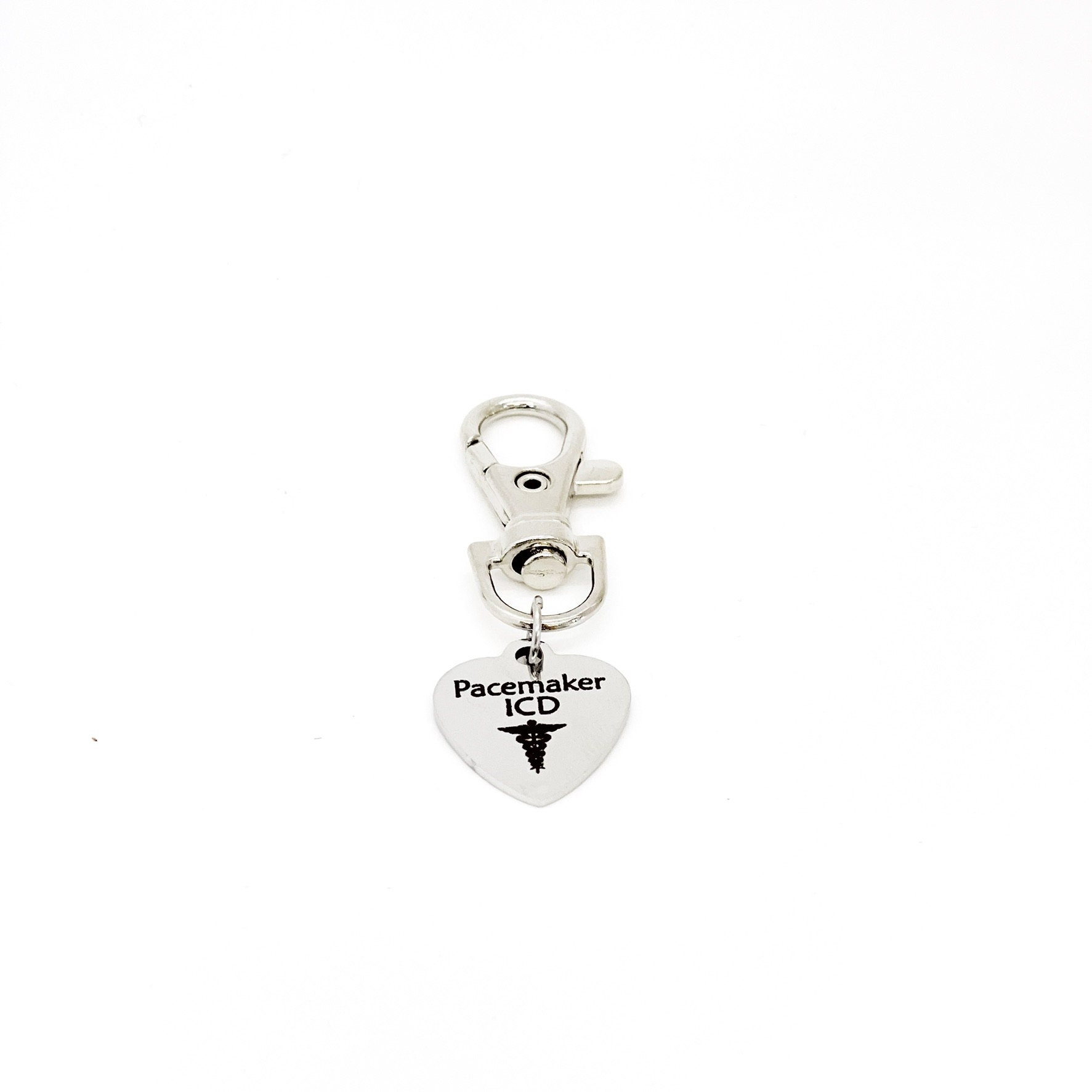 This is a zipper pull which includes a stainless steel laser engraved “Pacemaker ICD” medical ID or medical awareness charm.