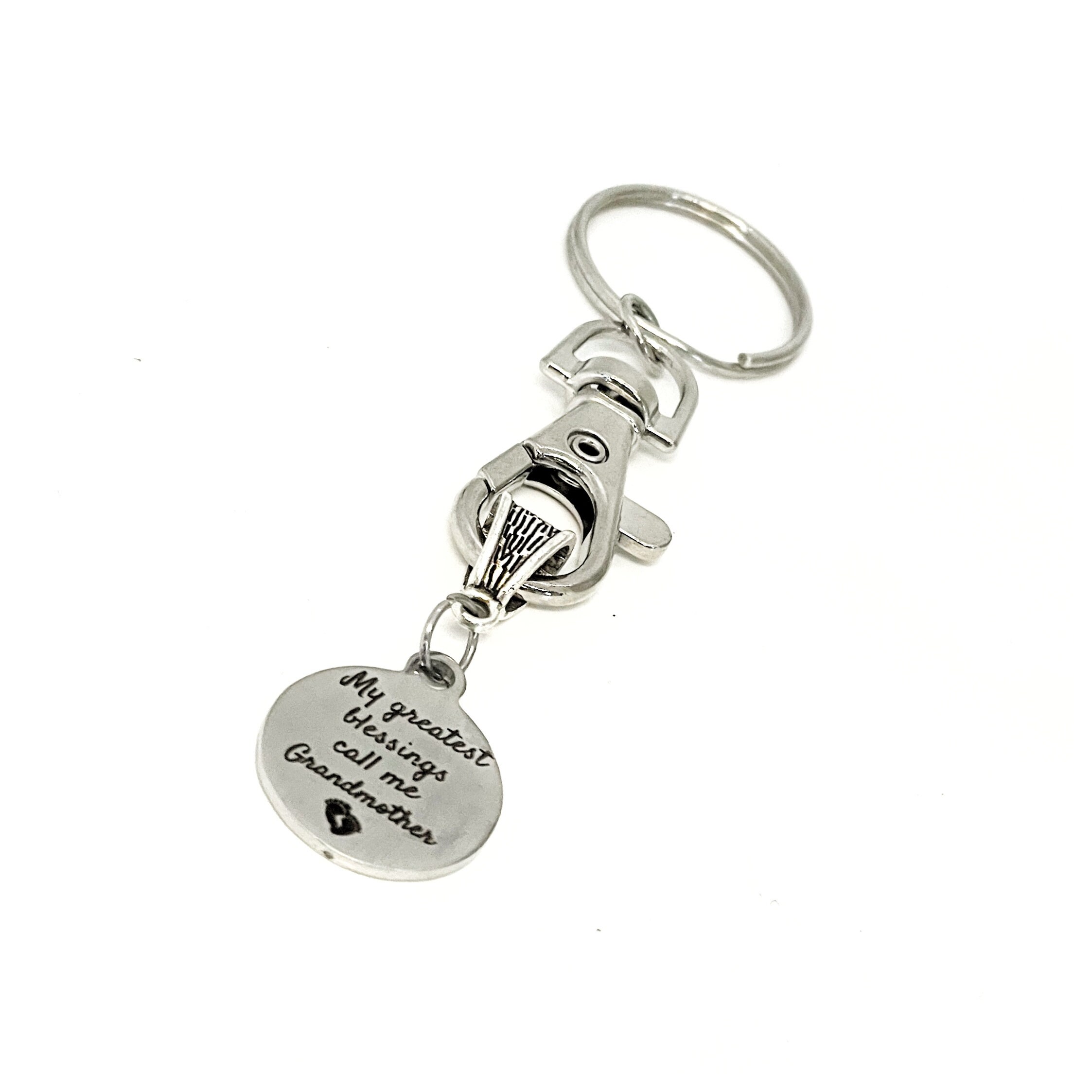 This is a great keychain that has a stainless steel laser engraved charm which says, "My greatest blessings call me Grandmother".