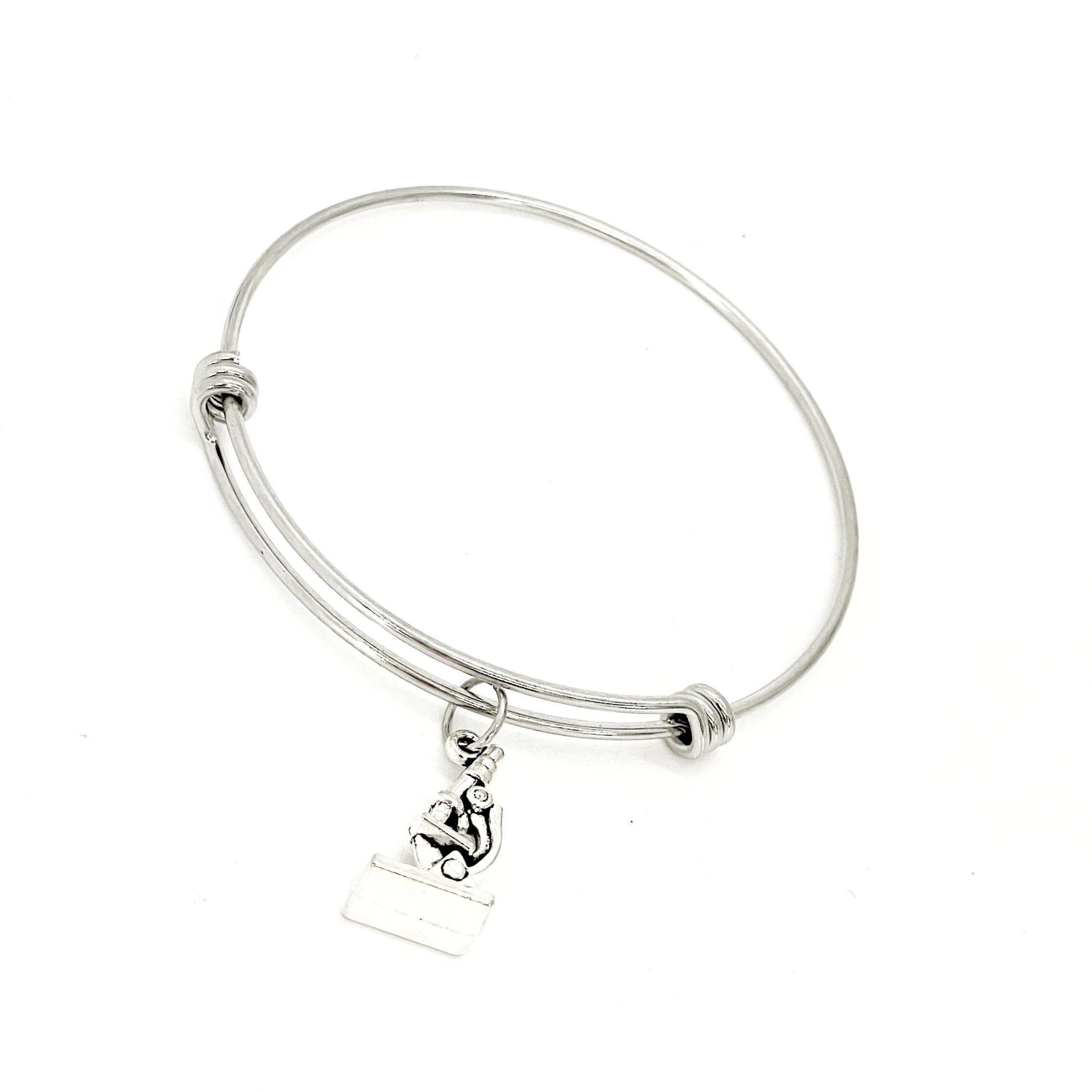 This bracelet would be a great gift for a science teacher, medical student, or science lover. It has a silvertone microscope charm on it.