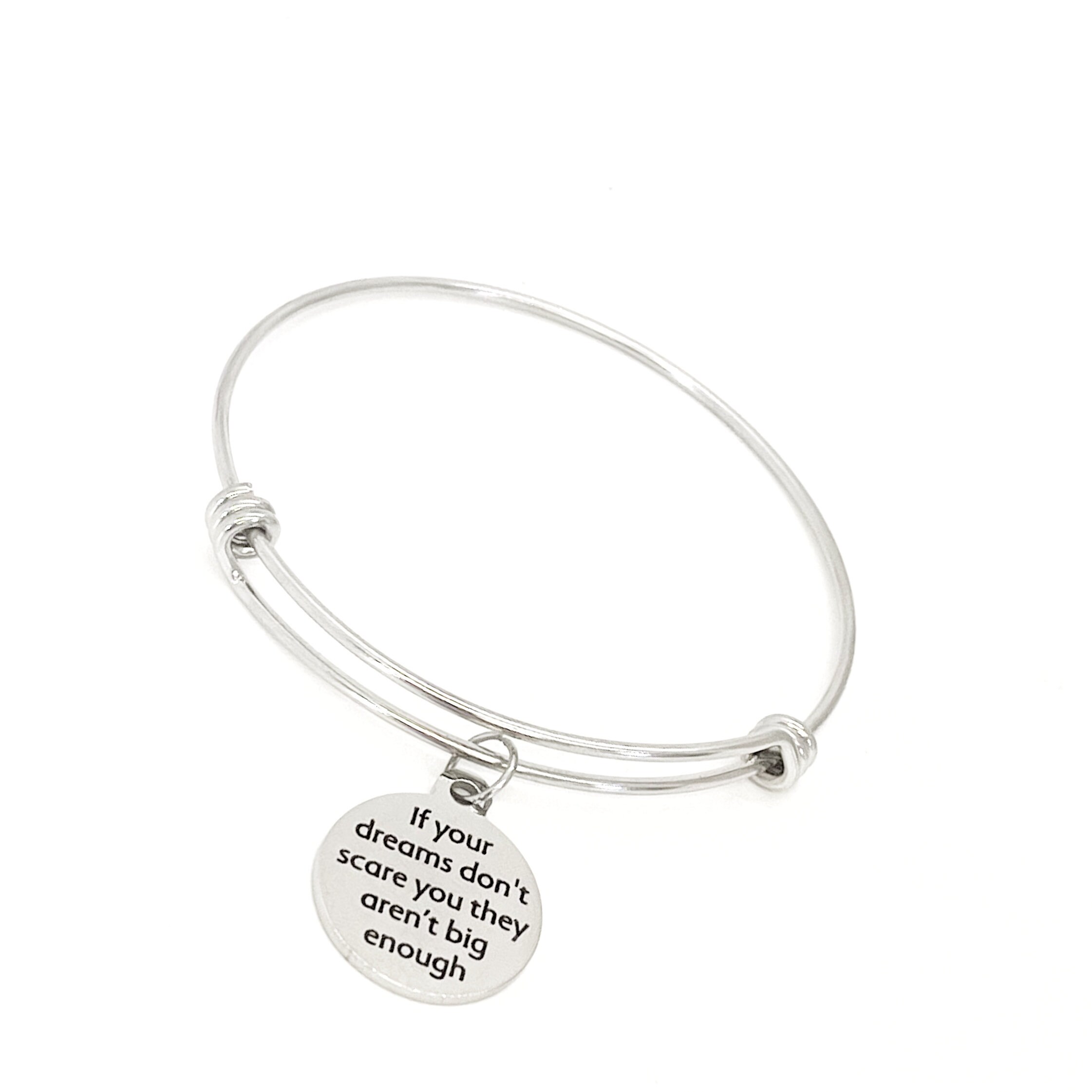 This bracelet would be a great gift. It has a stainless steel engraved charm with “If your dreams don’t scare you, they aren’t big enough” on it.