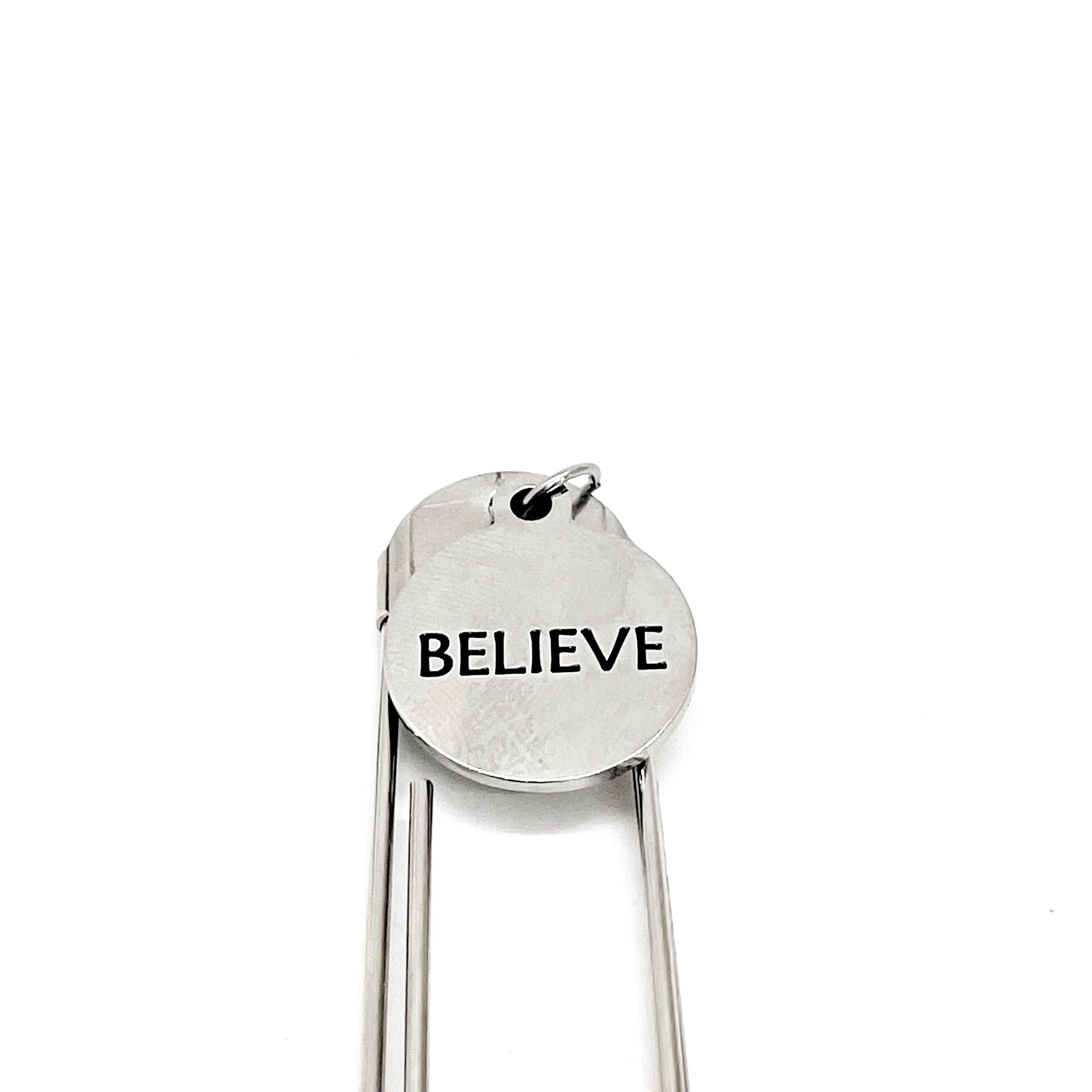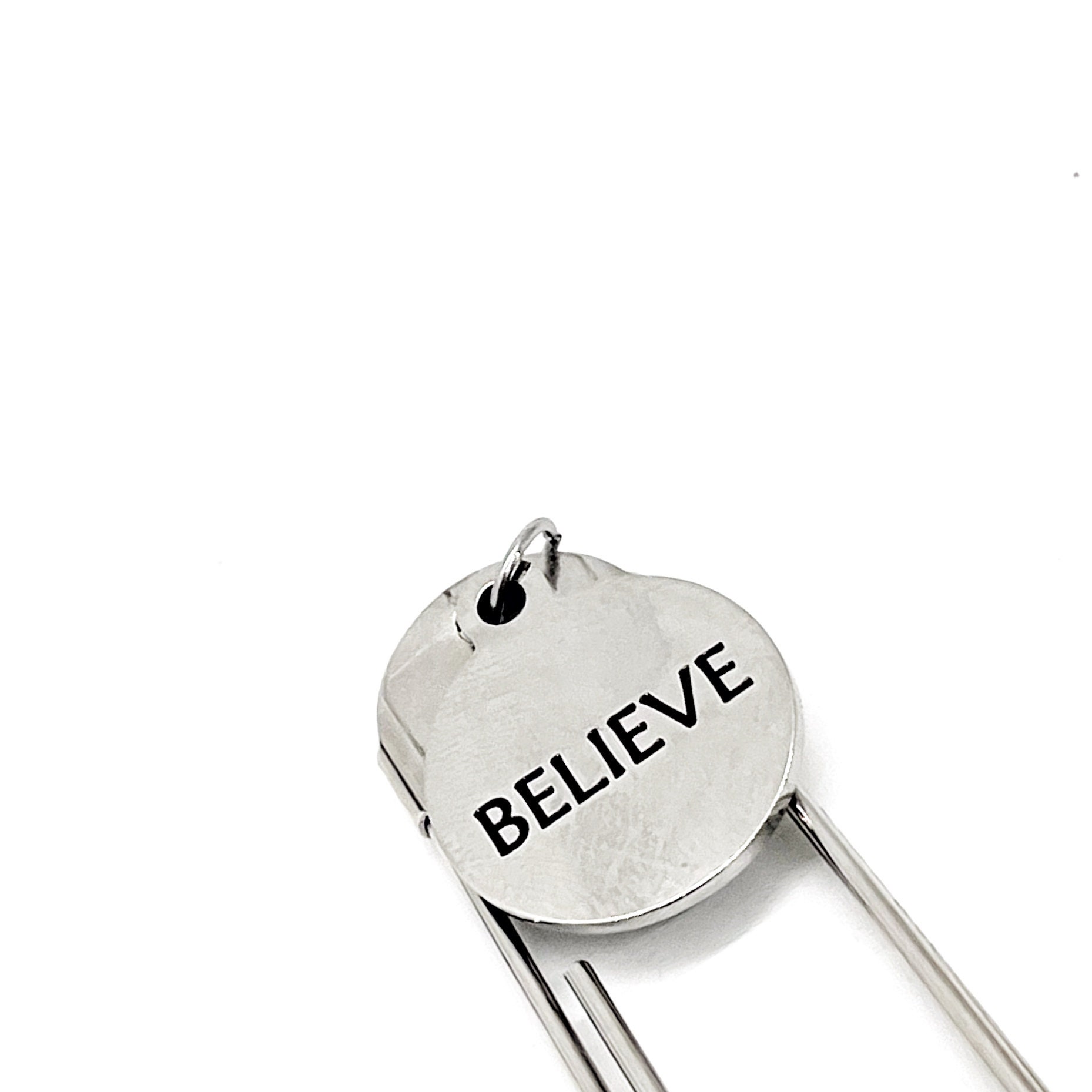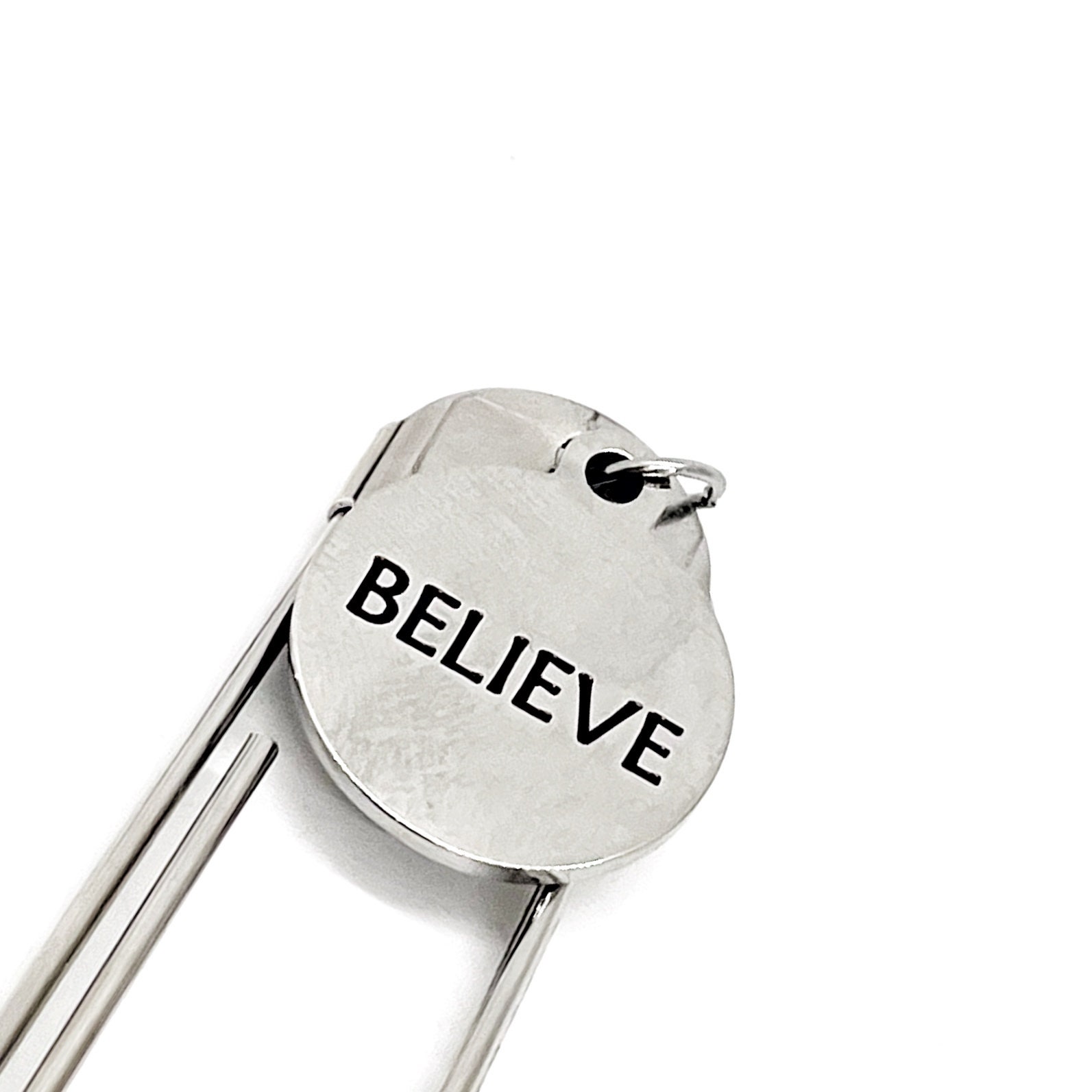 This is a great Christian planner paper clip bookmark gift. This paper clip bookmark has a stainless steel laser engraved charm with “Believe” on it.