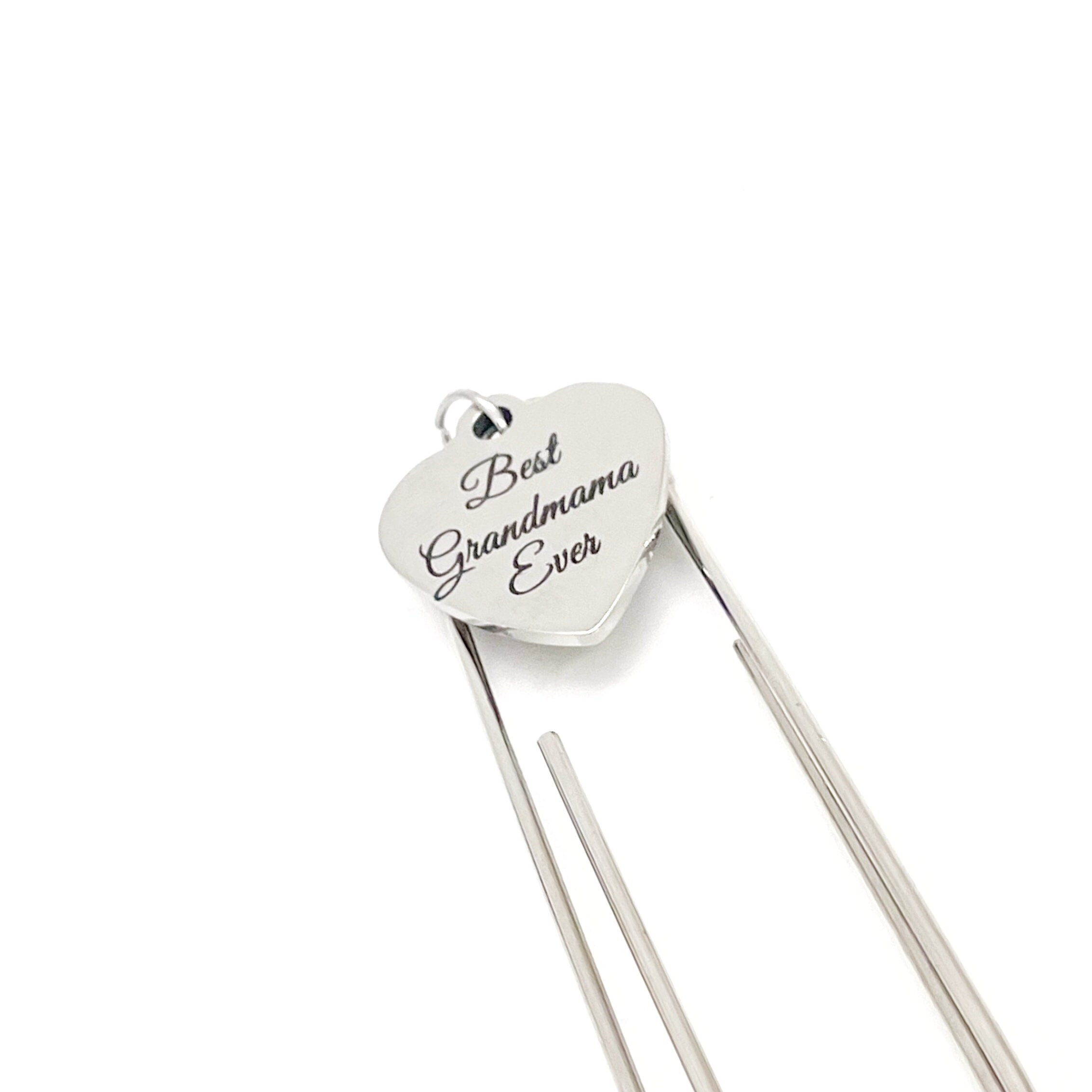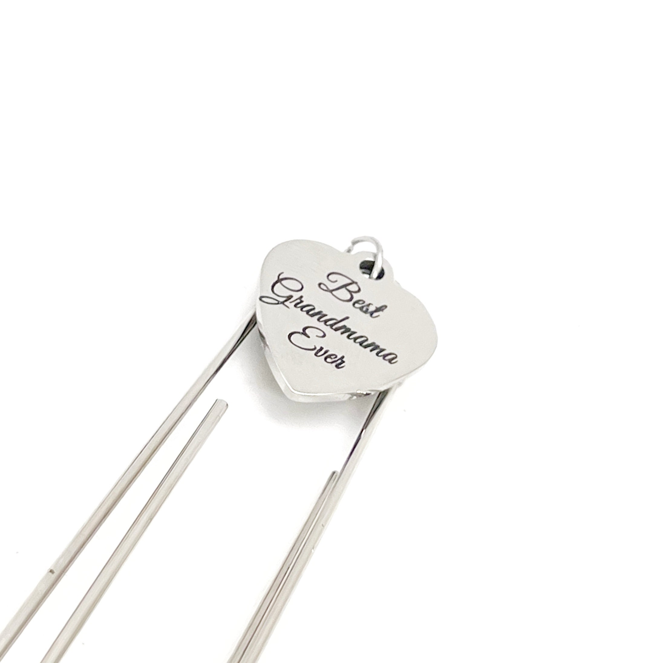 This bookmark has a stainless steel laser engraved charm with “Best Grandmama Ever” on it. It can be used as a bookmark, page marker, or planner book mark.