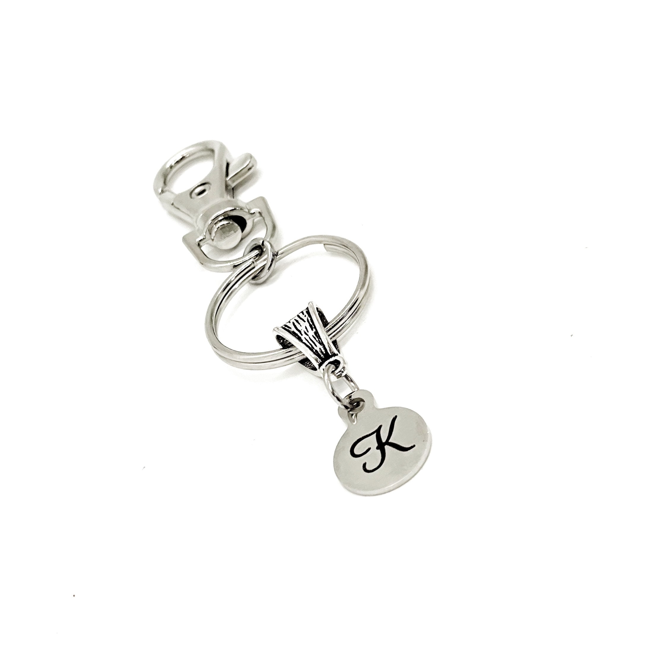 This is a great keychain gift . The keyring can be clipped onto your bag to make it easy to access without digging to the bottom of the bag. It has a stainless steel laser engraved charm with your choice of initials on it.