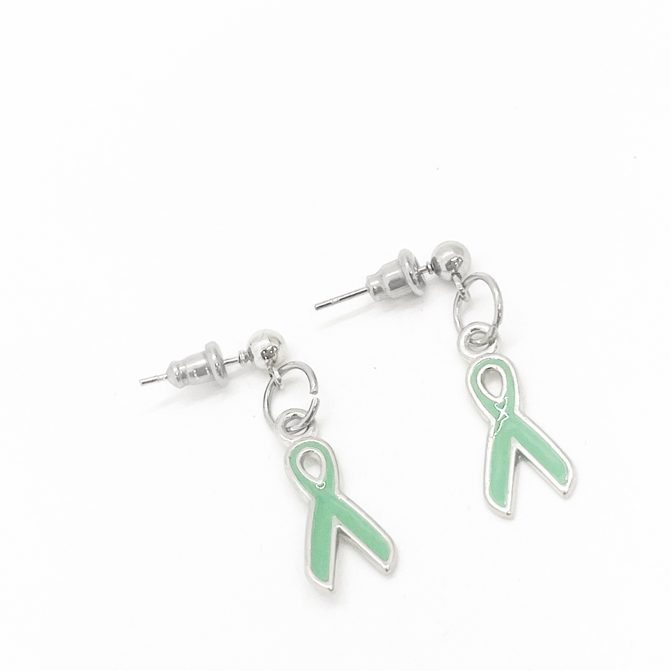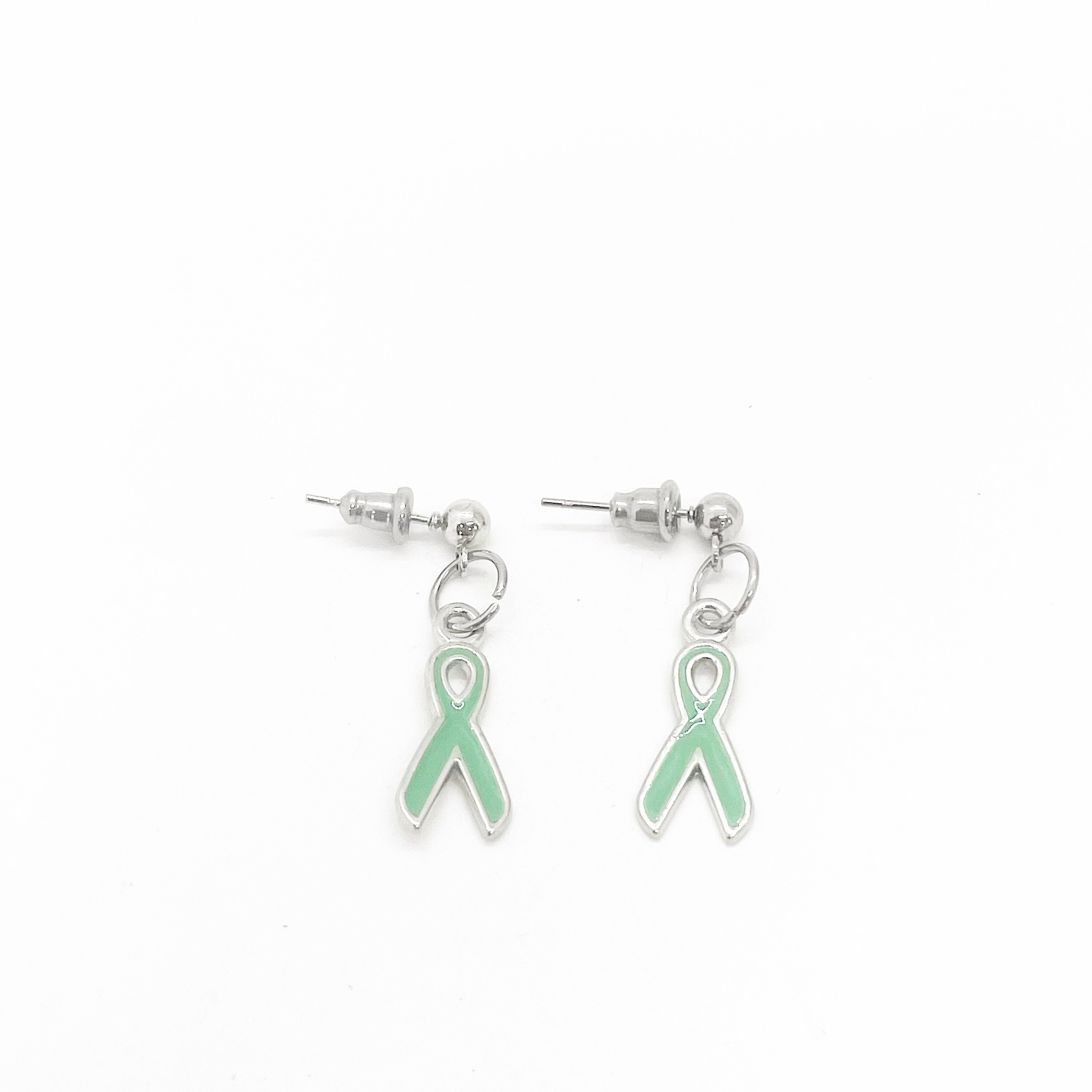 This is a great set of silvertone green ribbon charm earrings. The charms measure approx. 3/4 inch.