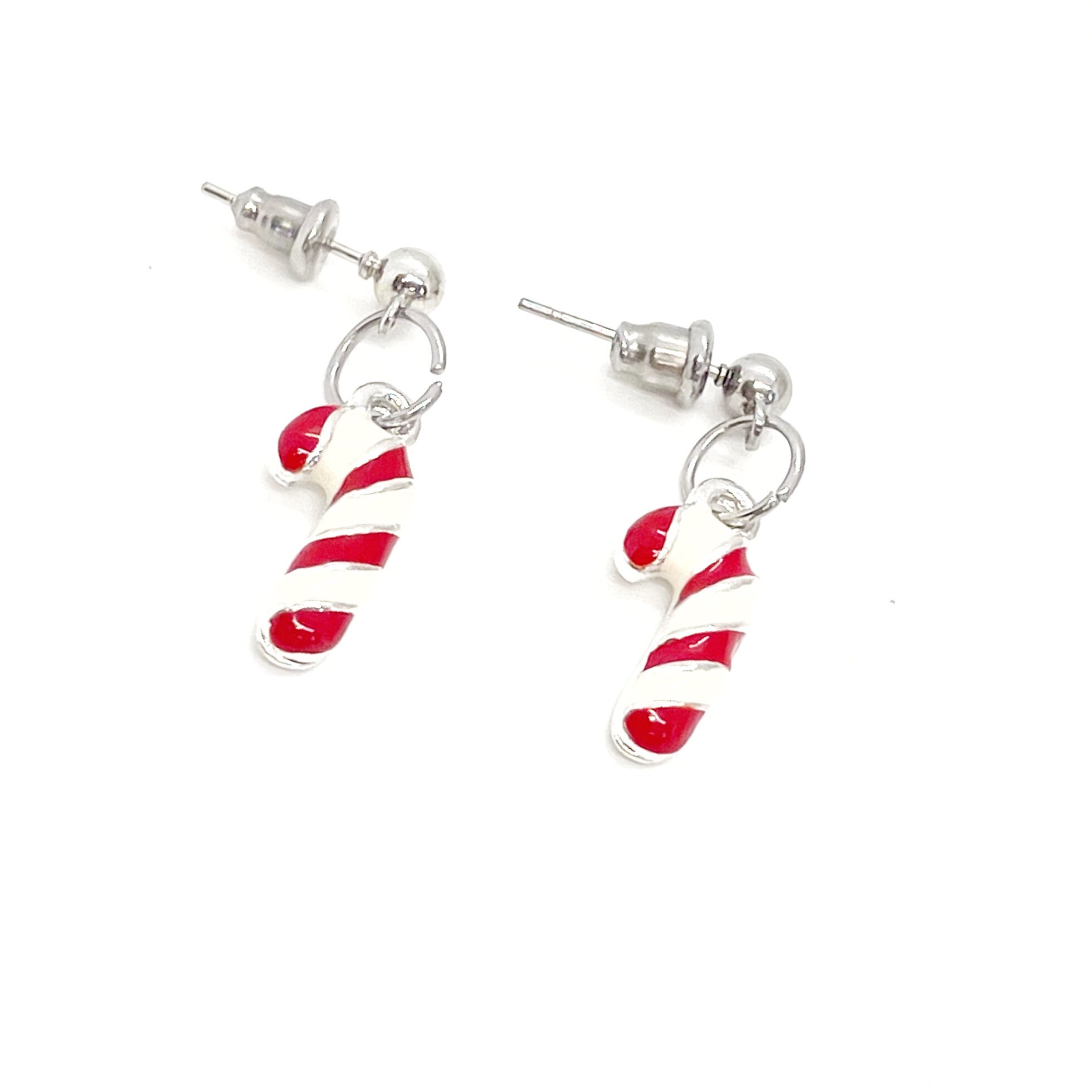 This is a great set of silvertone Christmas candy cane earrings. The charms measure approx. 3/4 inch.