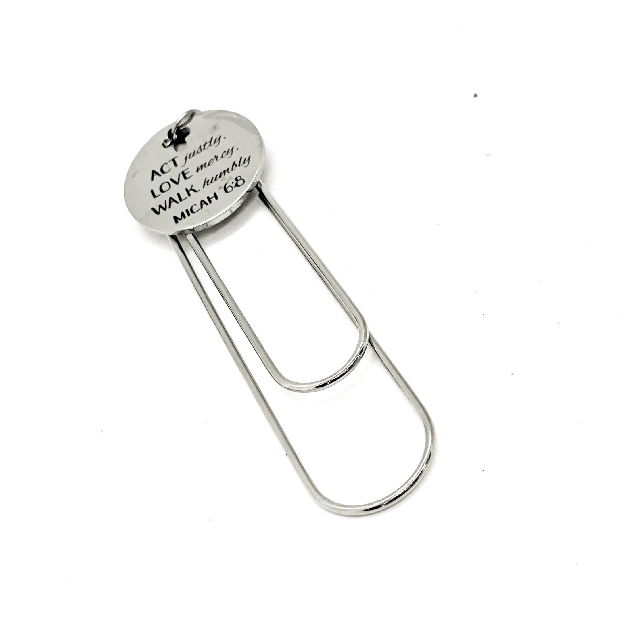 This bookmark has stainless steel laser engraved charm that says, “Act justly, love mercy, walk humbly” from Micah 6:8 on it. This would be a great way to encourage someone.