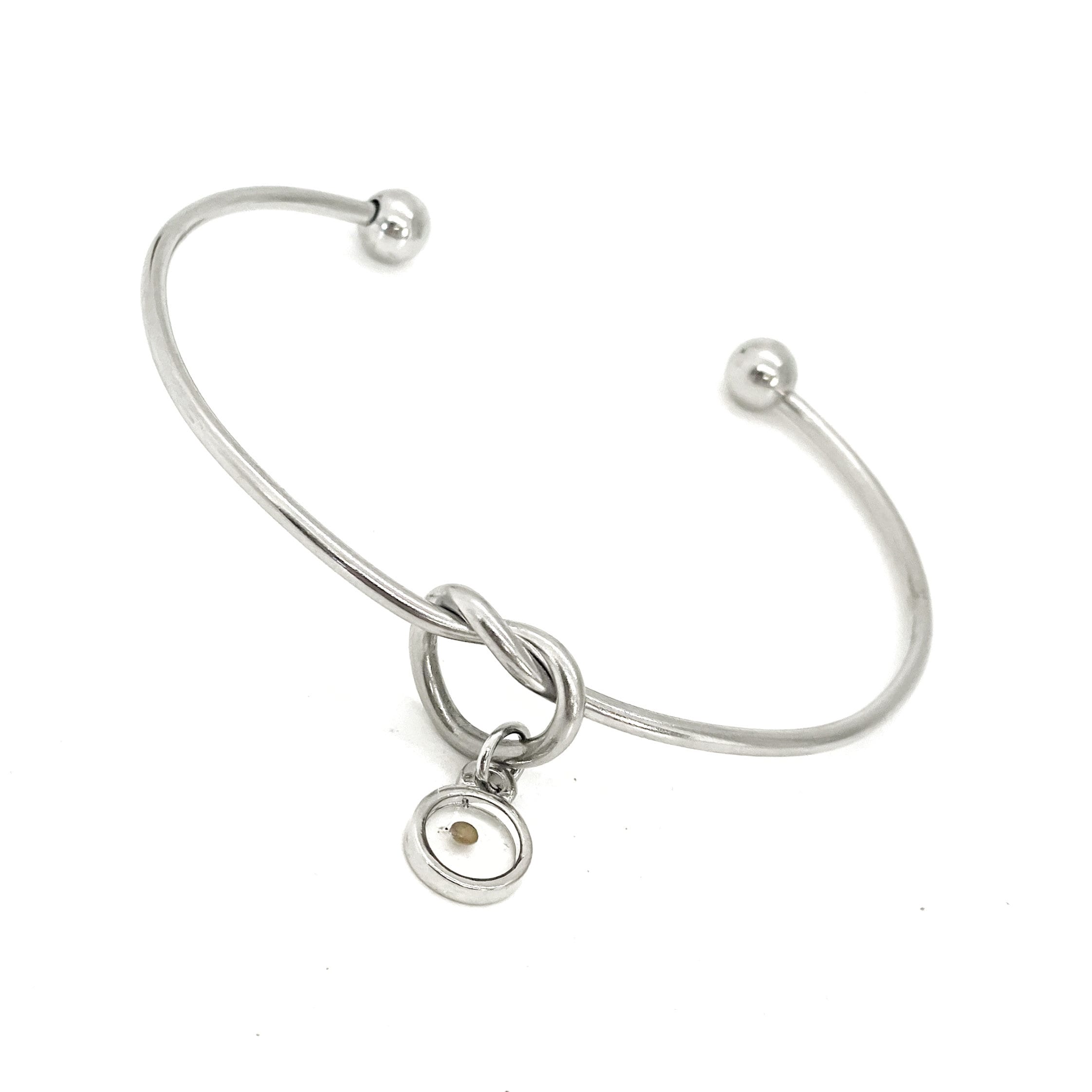 This is a beautiful knot bracelet with a small mustard seed charm to remind us that with the faith of a mustard seed we can move mountains. The charm measures approx. 3/8 inch across.