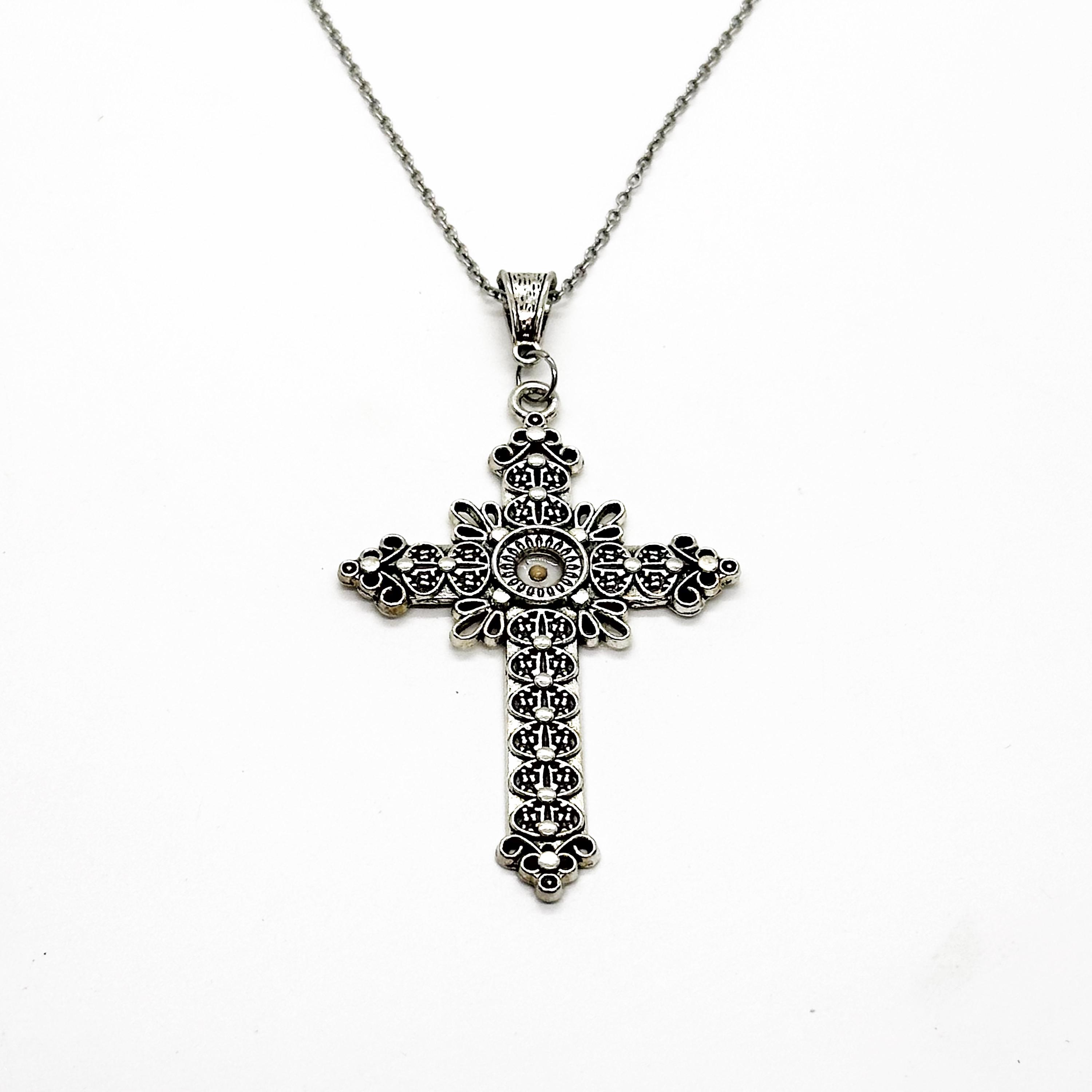 Large Ornate Mustard Seed Cross Necklace, Mustard Seed Faith, Large Cross Pendant, Matthew 17 20 Jewelry, Christian Jewelry, Faith Gift