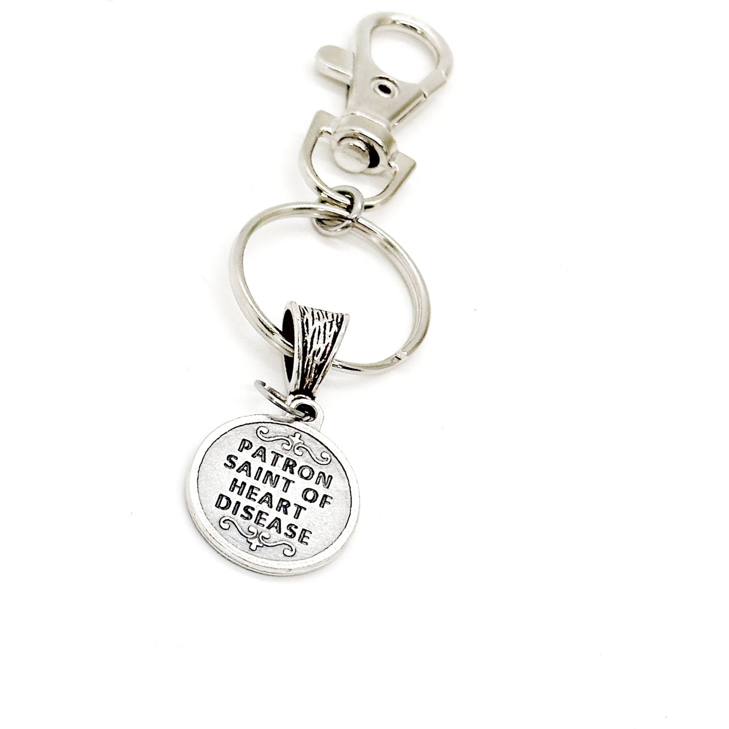 This is a great keychain gift. The keyring can be clipped onto your bag to make it easy to access without digging to the bottom of the bag. It has a Saint John of God, Patron Saint of Heart Disease on it. The charm measures approx. 3/4 inch across.