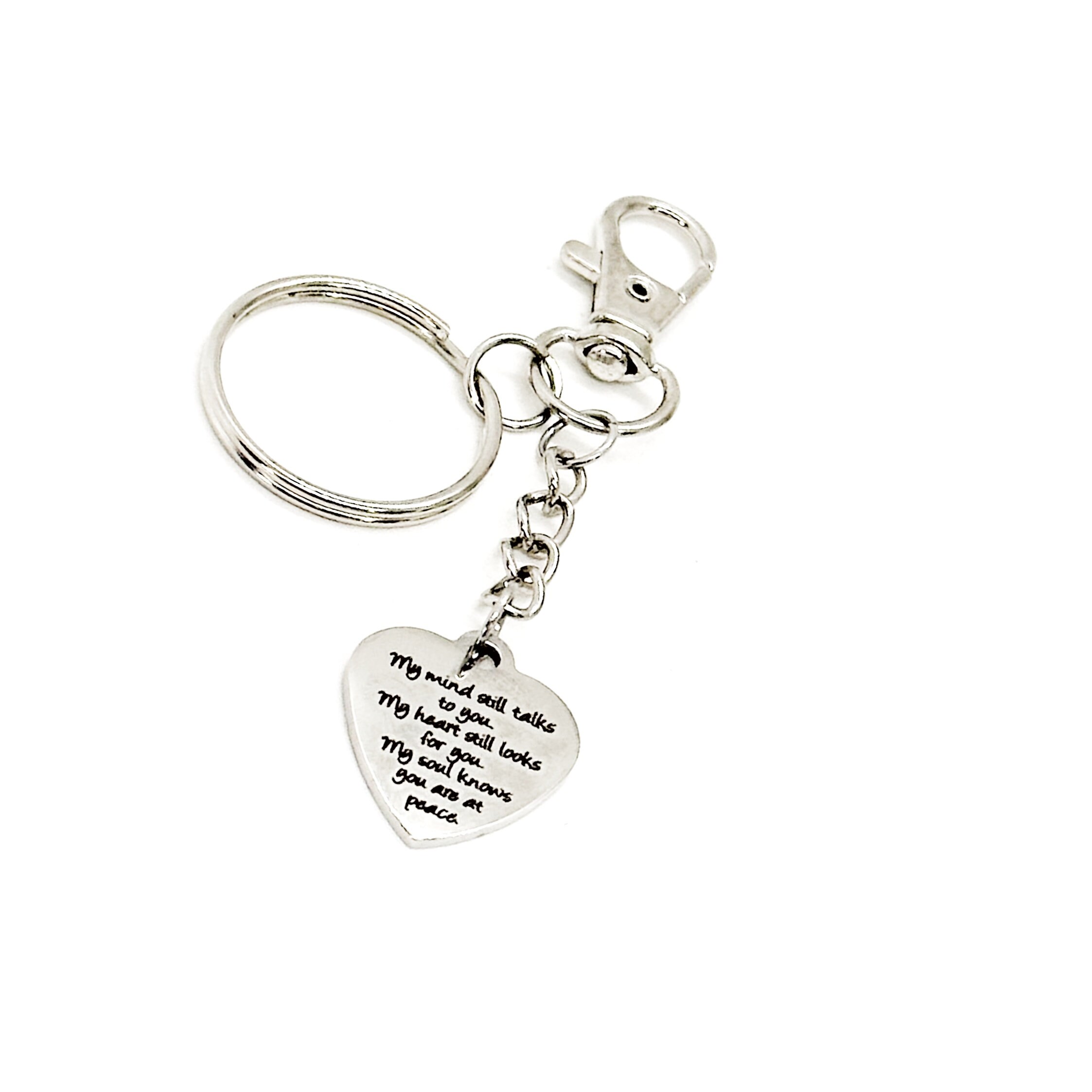My Mind Still Talks To You Heart Charm Clip On Keychain, Memorial Gift, Remembering Her, Remembering Him, Sympathy Gift, Loss Of Loved One
