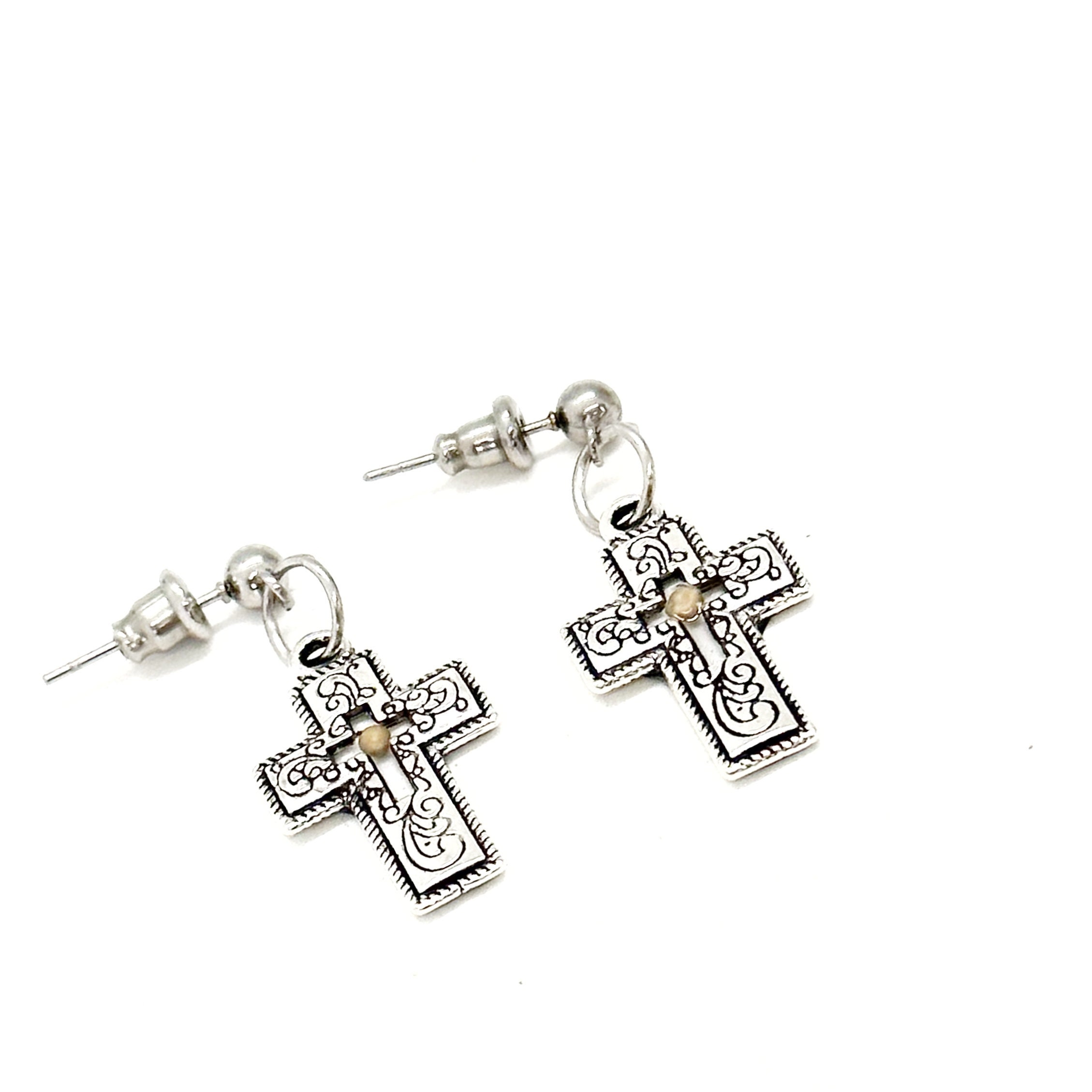 This is a unique and great set of statement earrings. They are made to represent mustard seed faith as described in Matthew 17:20. These would be great earrings to remind yourself or someone that you love that you can move mountains with faith as small as a mustard seed. The drop is a silvertone metal and are placed on stainless steel posts. The charm measures approx. 1 inch long.