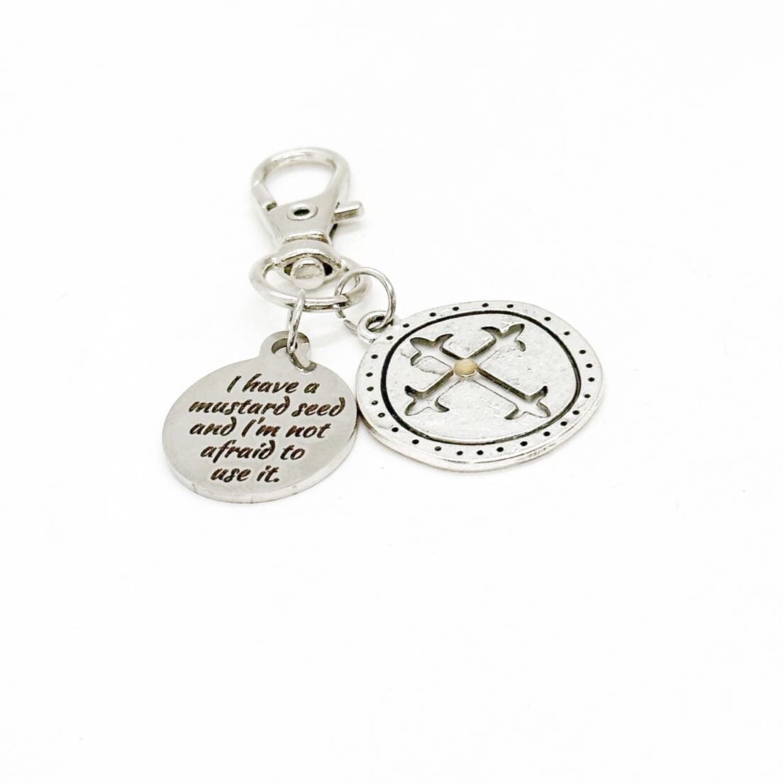 I Have A Mustard Seed And I’m Not Afraid To Use It With Round Cross Charm Clip On Charm, Matthew 17 20 Charm, Purse Charm, Keychain Charm