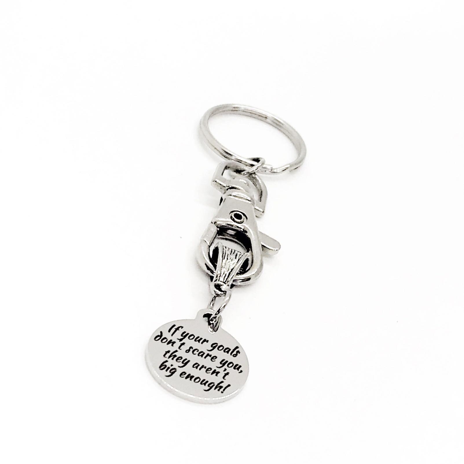This keychain would make a great gift. It has a stainless steel laser engraved charm with “If your goals don’t scare you they aren’t big enough” on it.