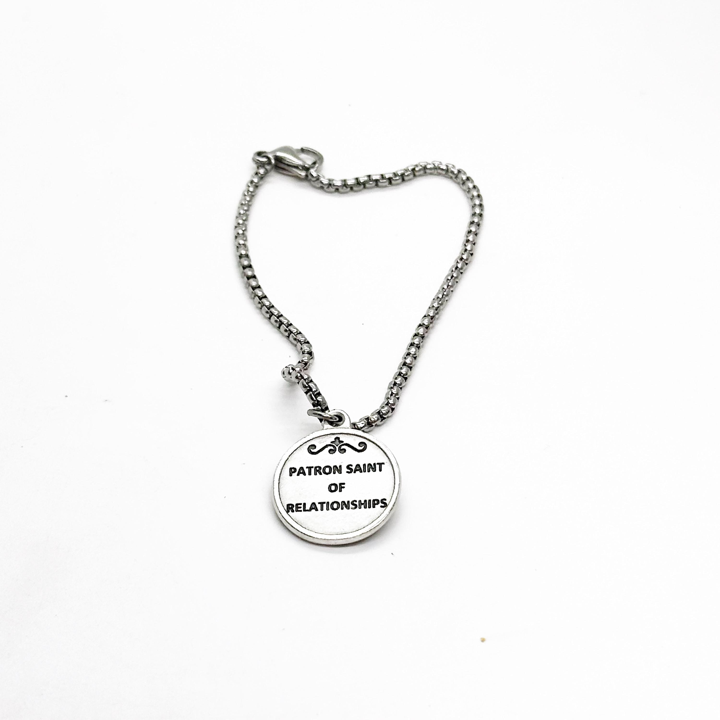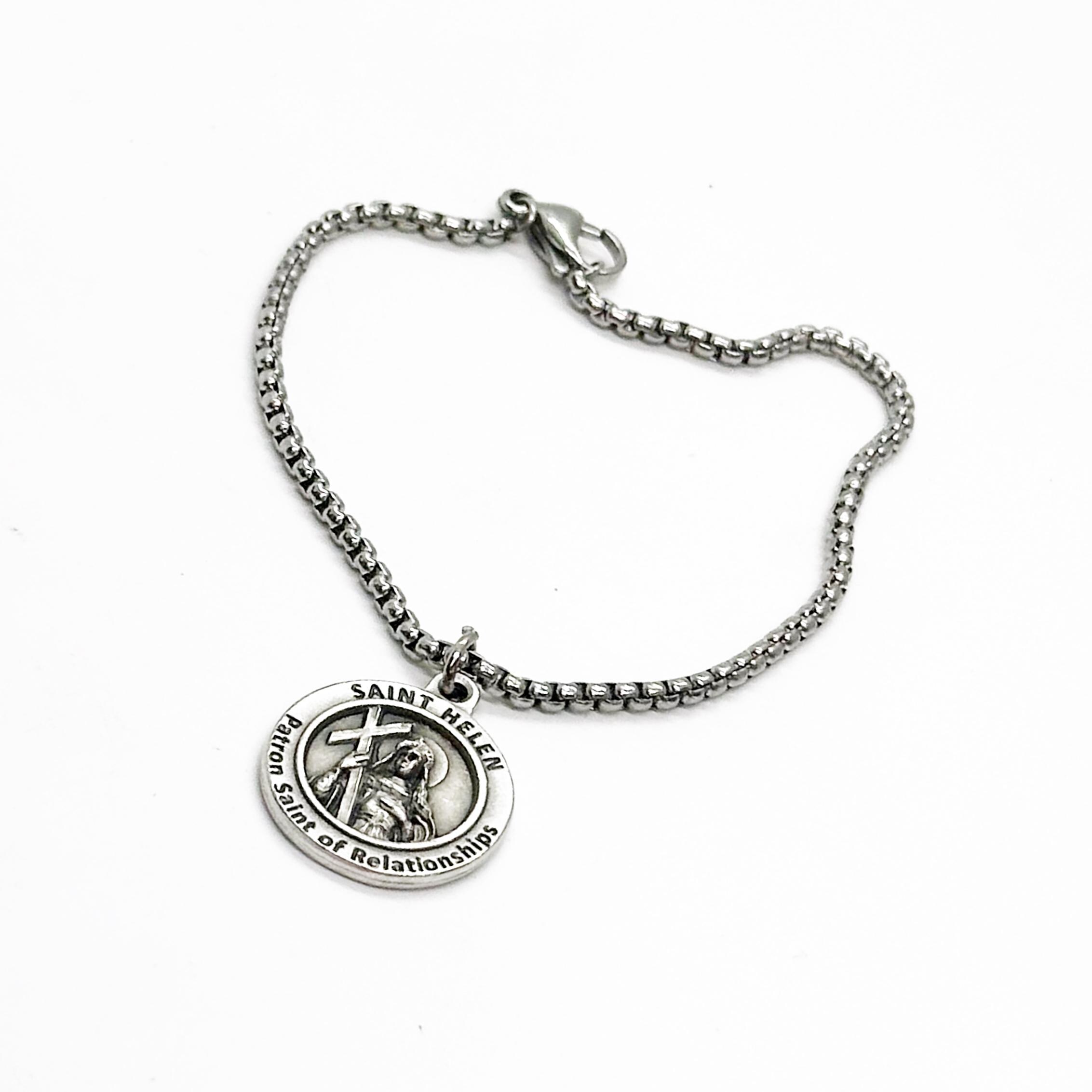This is a beautiful bracelet with a Saint Helen, the patron saint of relationships, charm. The charm measures approx. 3/4 inch across.