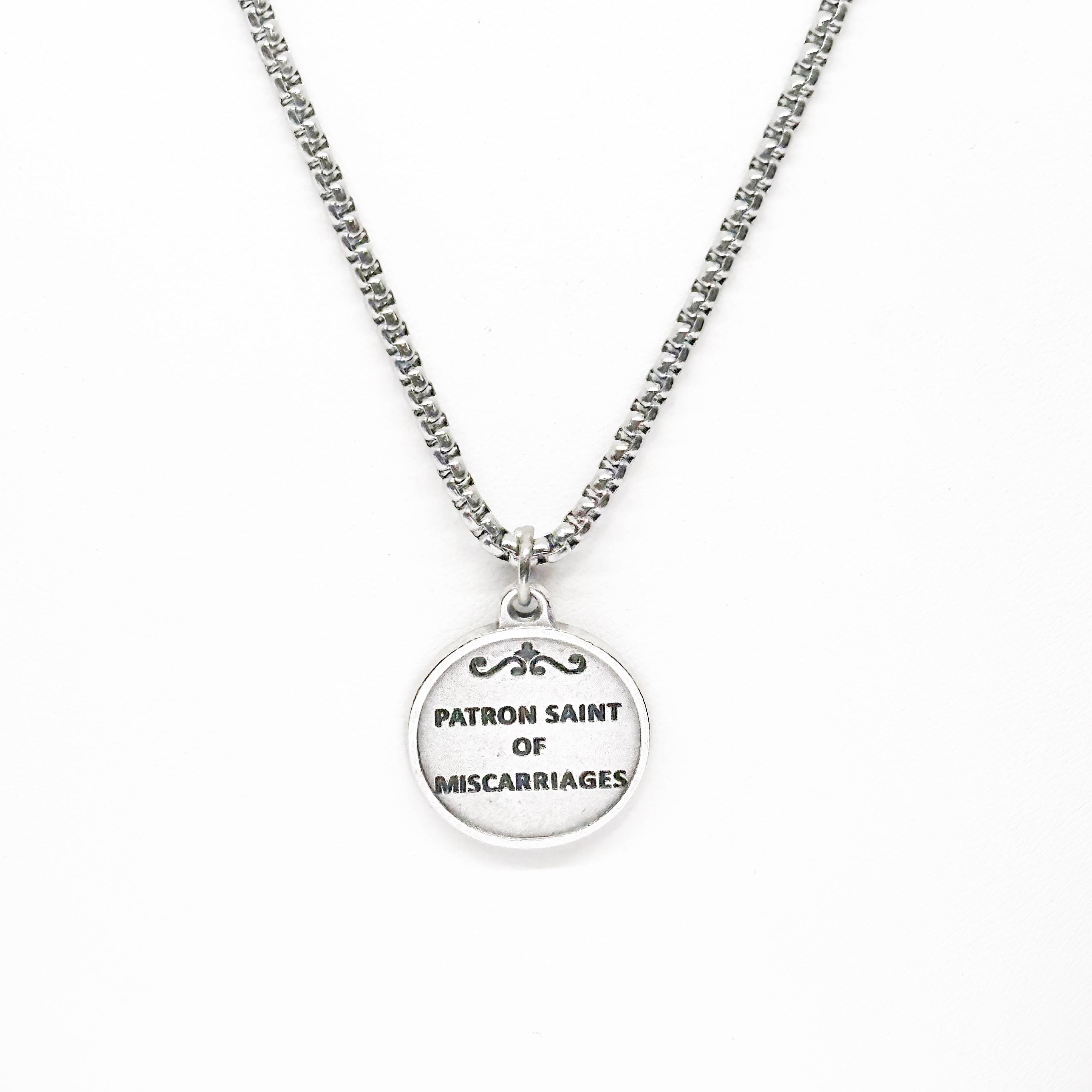 This necklace comes with a Saint Catherine of Sweden, Patron Saint of Miscarriages, charm pendant on a stainless steel box chain.