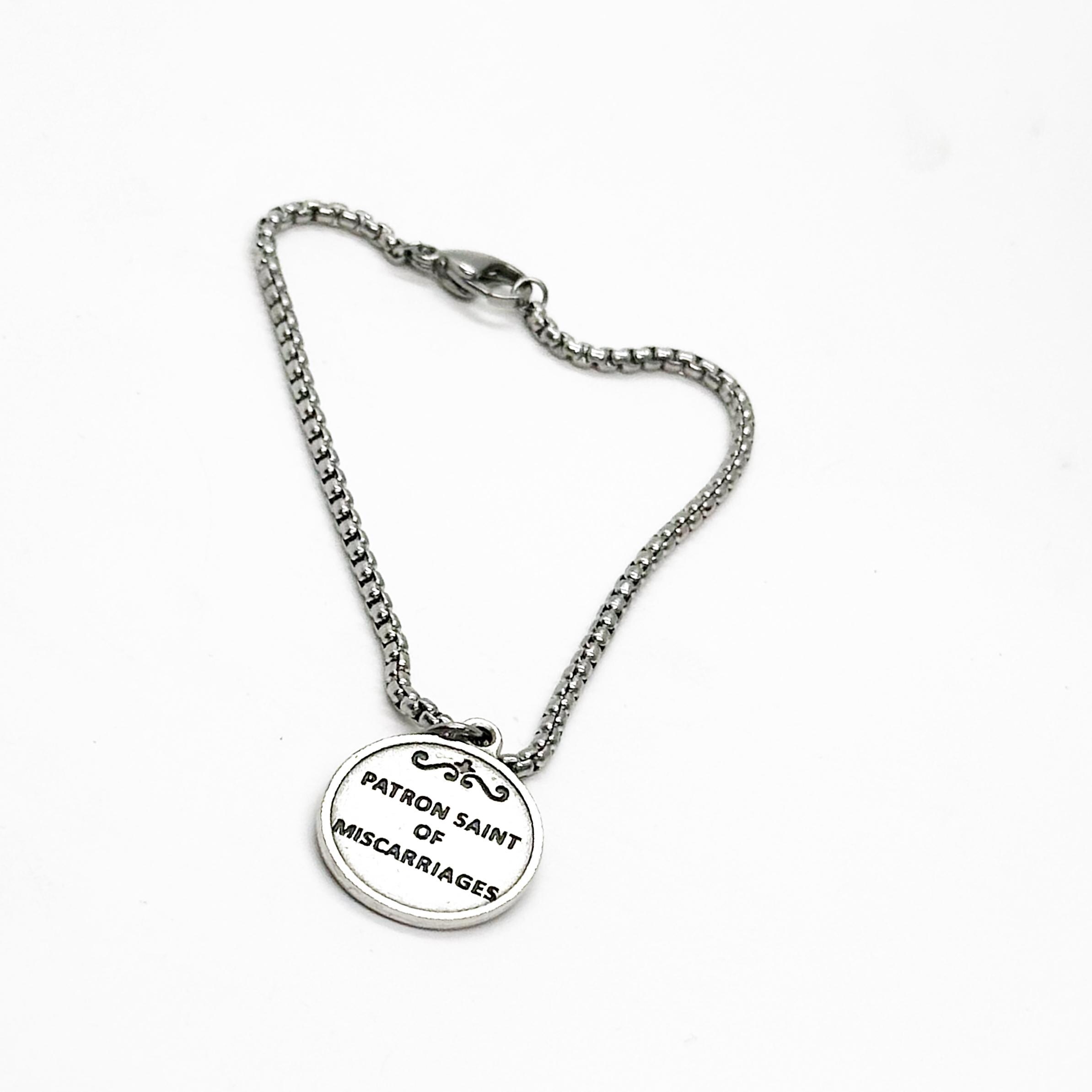 This is a beautiful bracelet with a Saint Catherine of Sweden, the patron saint of miscarriages, charm. The charm measures approx. 3/4 inch across.