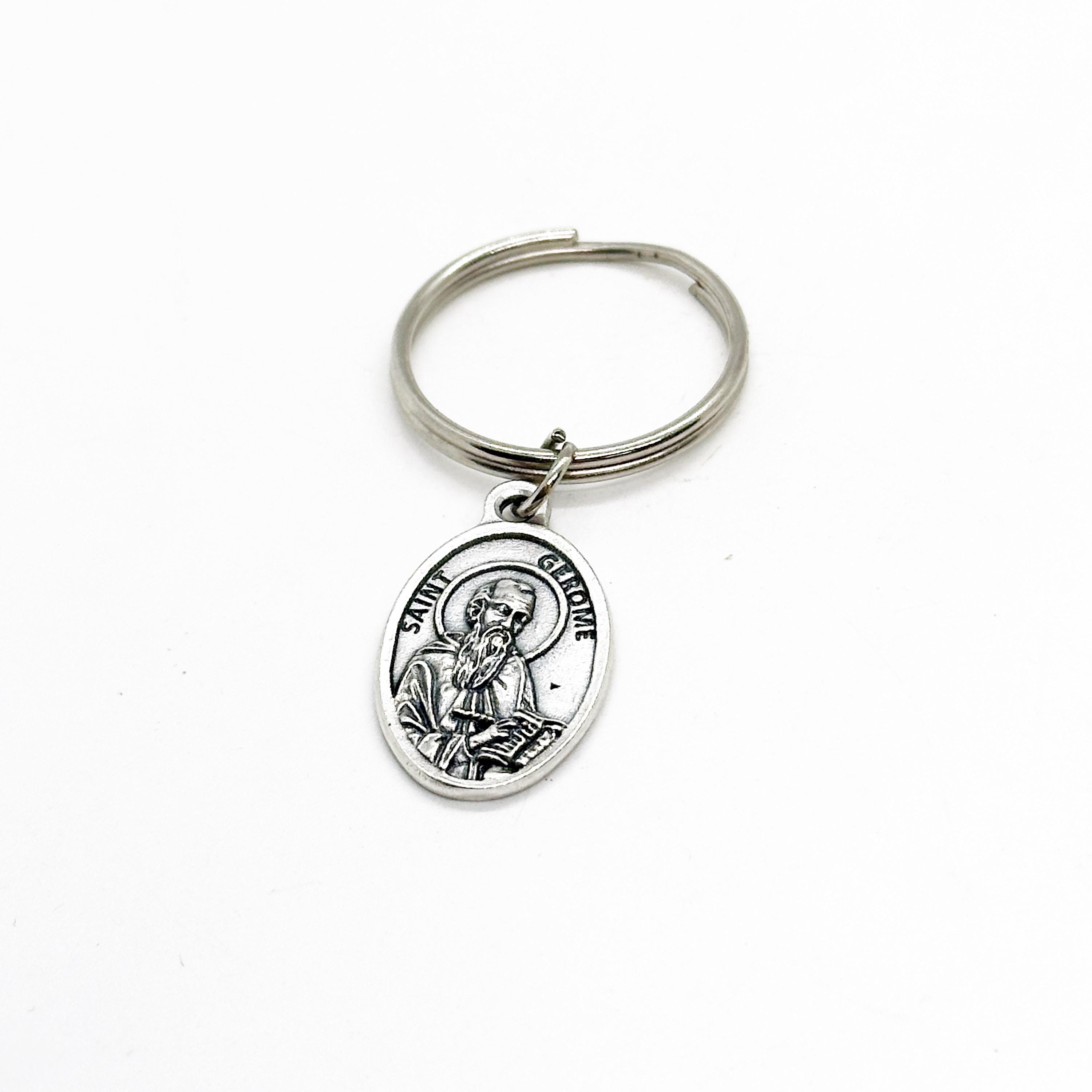This is a wonderful keychain gift! It has a Saint Gerome, Patron Saint of Archaeologists, archivists, Bible Scholars, librarians, libraries, school children, students and translators. The charm measures approx. 1/2 inch across.