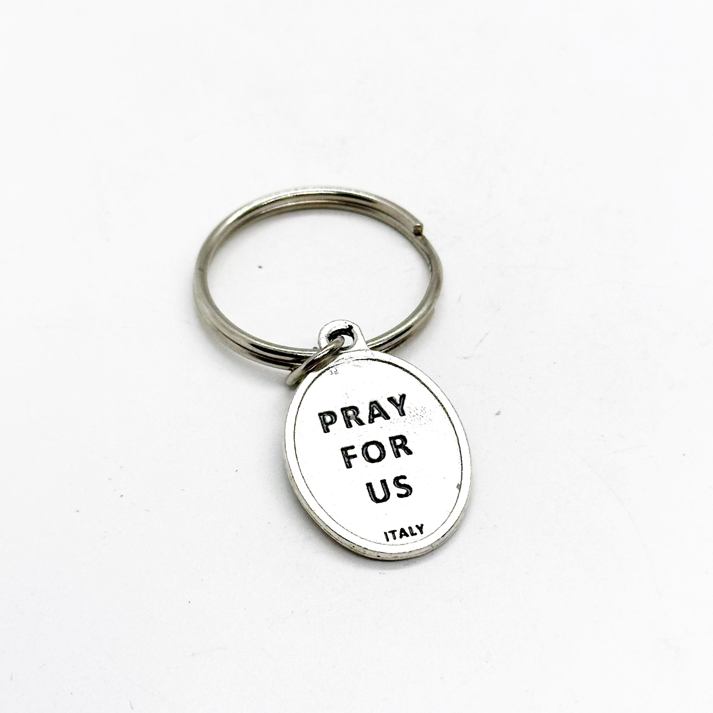 This is a wonderful keychain gift! It has a Saint Teresa of Calcutta charm with “Pray for Us” on the back. St. Theresa is known as the patron saint of World Youth Day and Missionaries of Charity. missions and missionaries, those suffering terminal illnesses, florists, gardeners, orphans, homeless and aviators. The charm measures approx. 3/4 inch across.