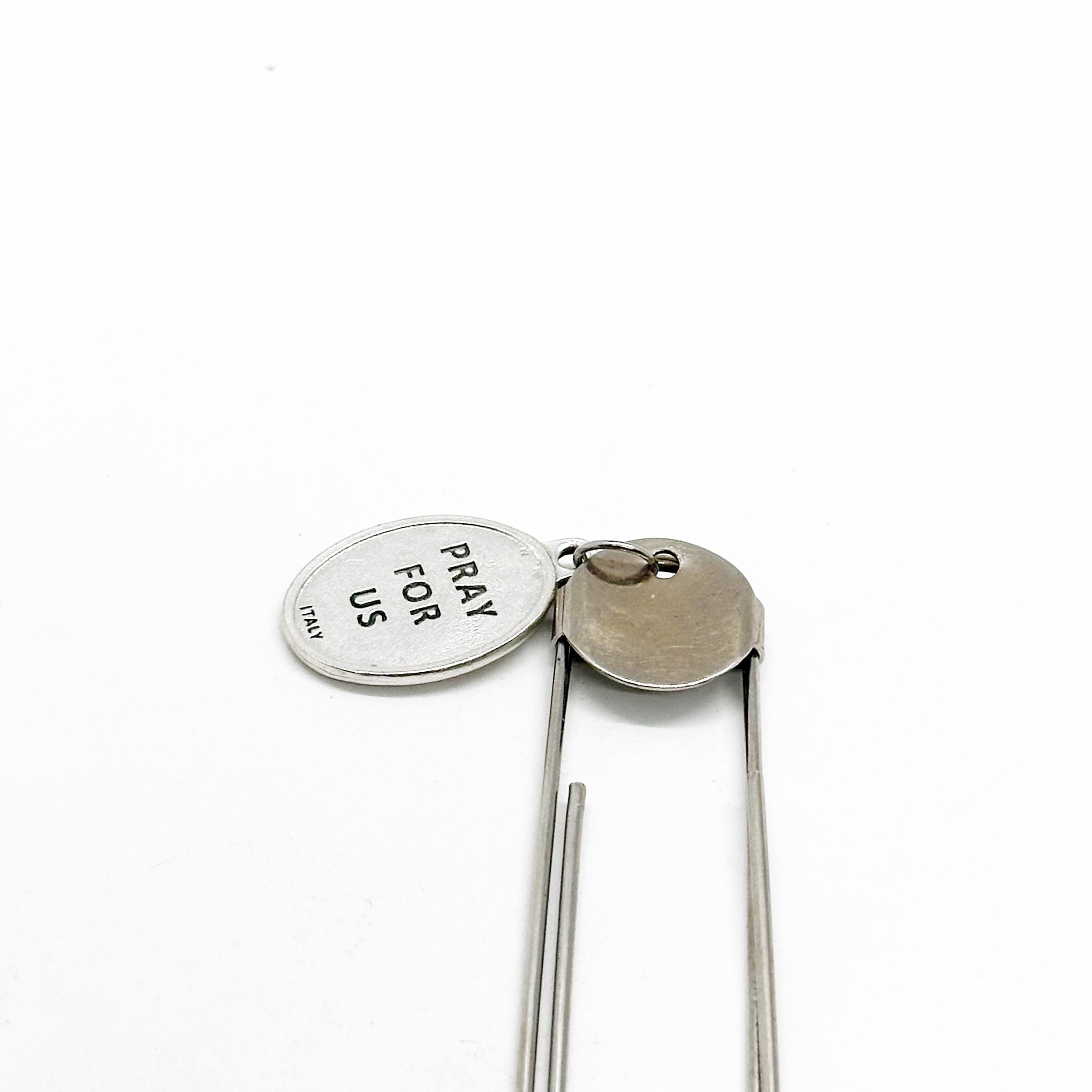 This is a great large paper clip style bookmark that has a Saint Teresa of Calcutta charm with “Pray for Us” on the back. St. Theresa is known as the patron saint of World Youth Day and Missionaries of Charity. missions and missionaries, those suffering terminal illnesses, florists, gardeners, orphans, homeless and aviators. It can be used as a bookmark, page marker, or planner book mark.