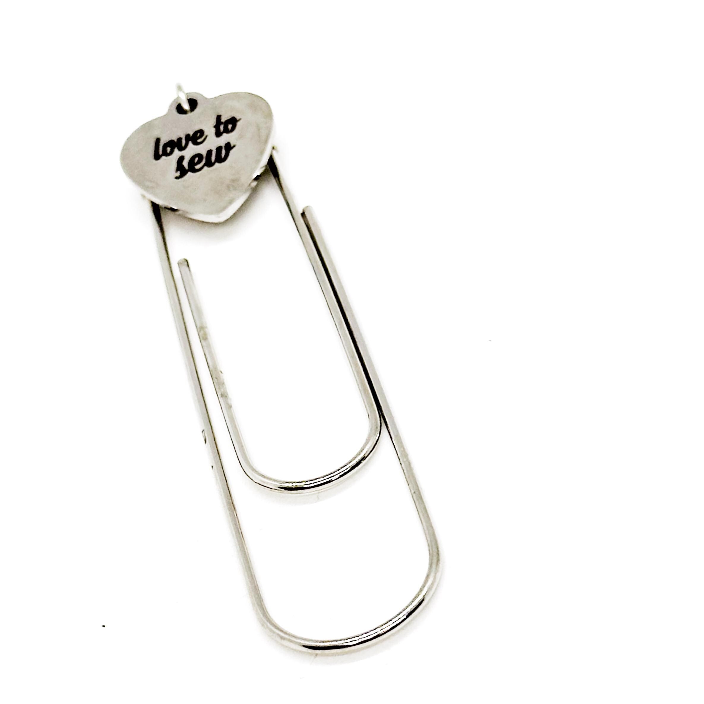This is a great large paper clip style bookmark that has a stainless steel laser engraved charm with “Love to sew” on it. It can be used as a bookmark, page marker, or planner book mark.