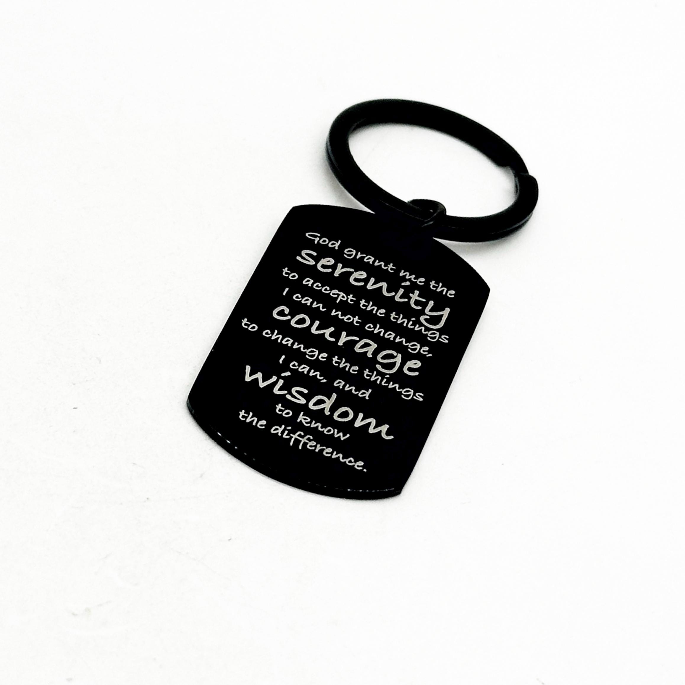 Serenity Prayer Black Engraved Key Chain, Serenity Courage Wisdom, Serenity Prayer Gift, Serenity Prayer Charm, Christian Recovery, Believer