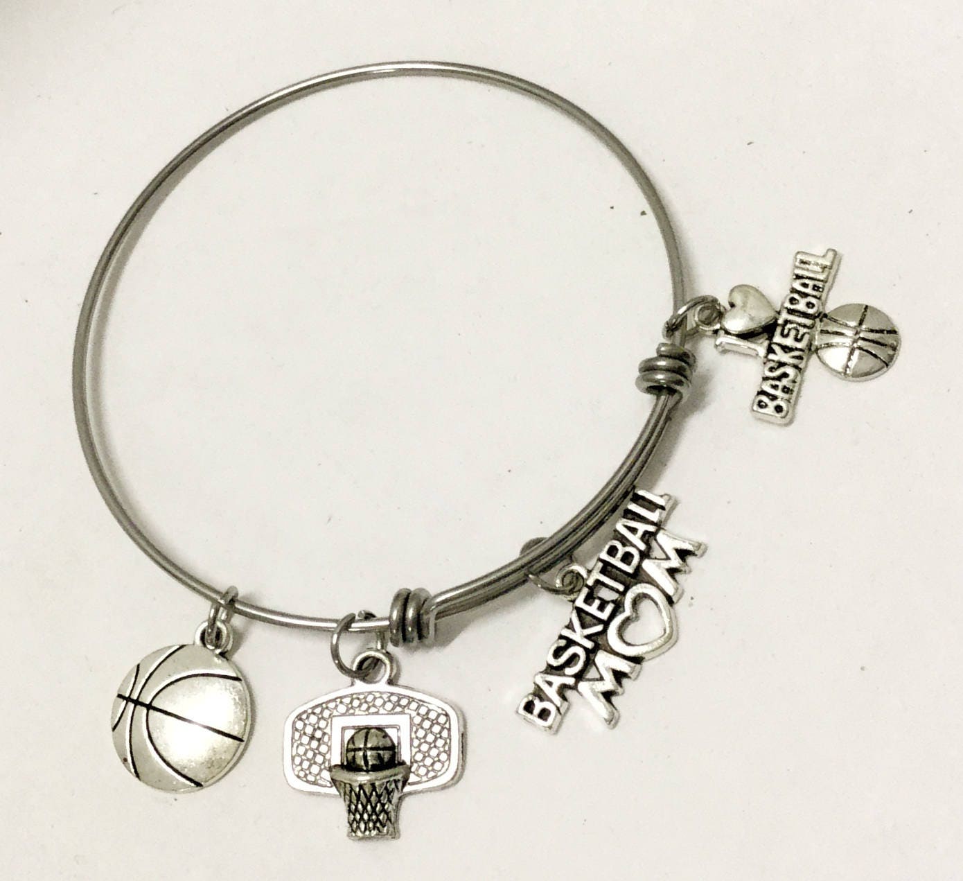 Show your love for your favorite basketball player with this expandable basketball mom bangle charm bracelet.