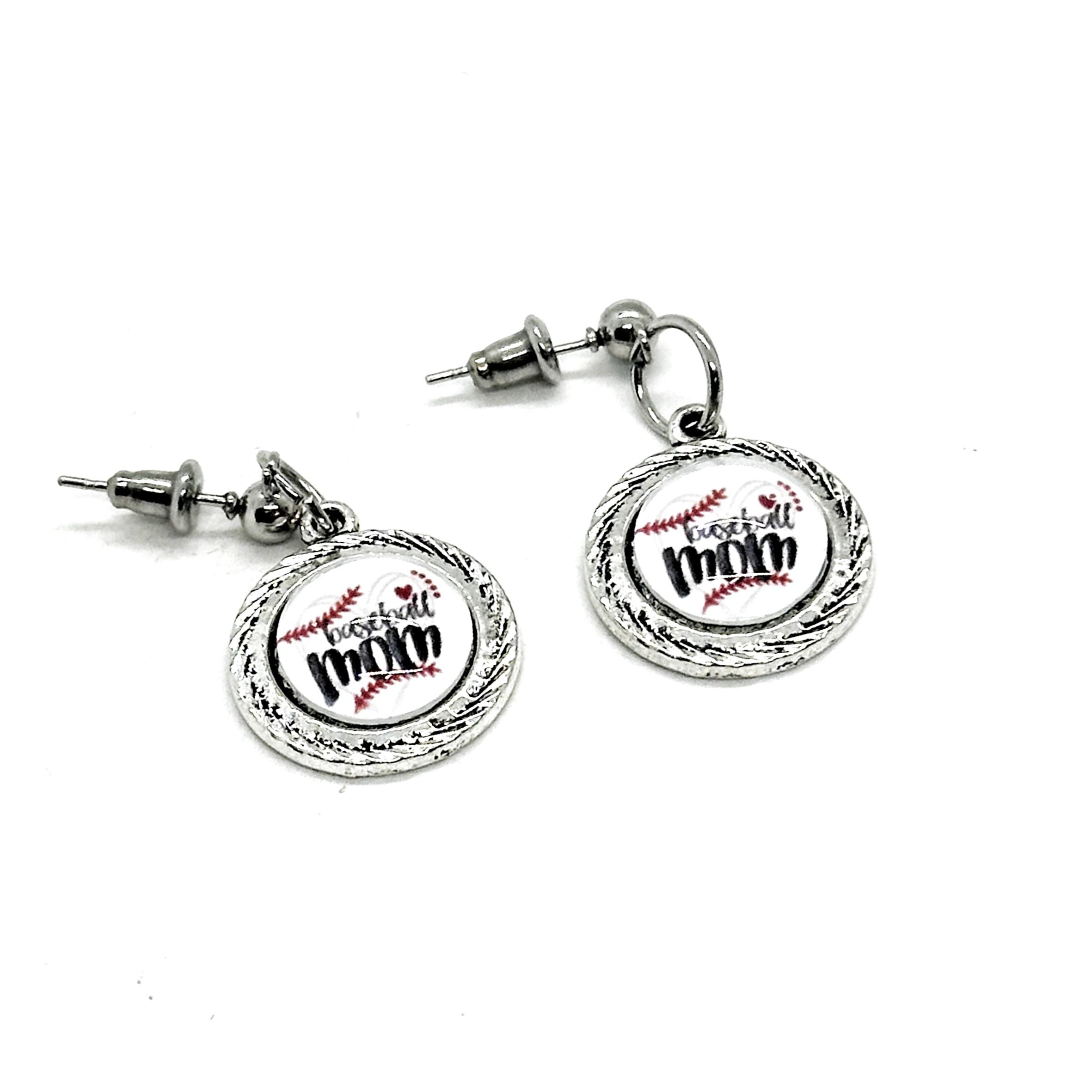 This is such a great set of baseball mom earrings. They are 12mm cabochons on stainless steel posts.