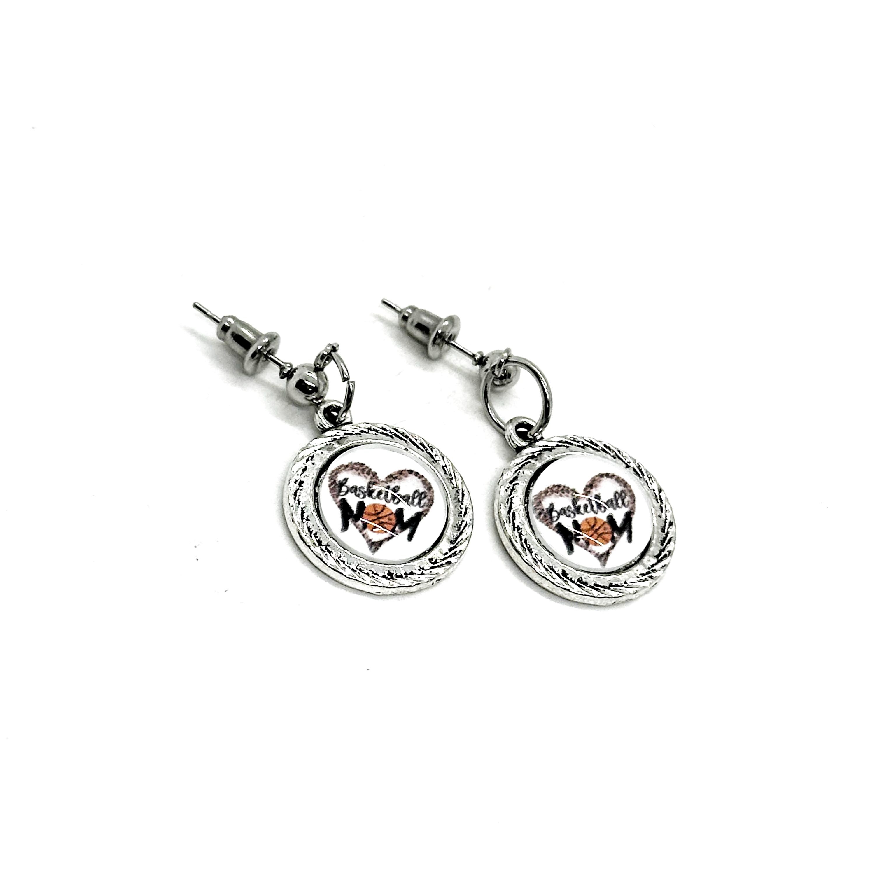 This is such a great set of basketball mom earrings. They are 12mm cabochons on stainless steel posts.