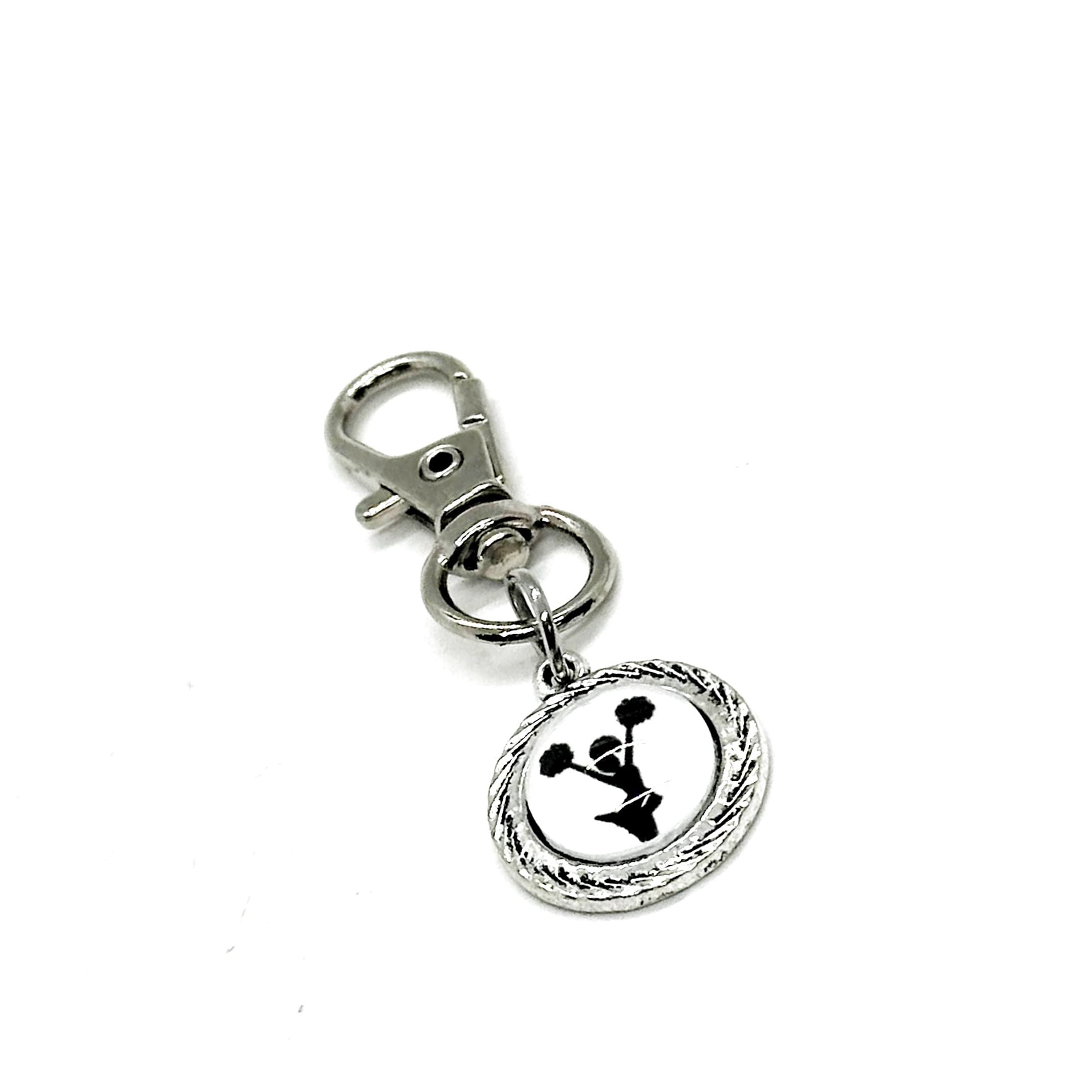 This is a great zipper pull or bag charm clip gift that would be a perfect gift someone you love. It would be a great charm to clip onto a tote, purse, sports bag, book bag or key chain. It has a 12mm cheerleaderCharm.
