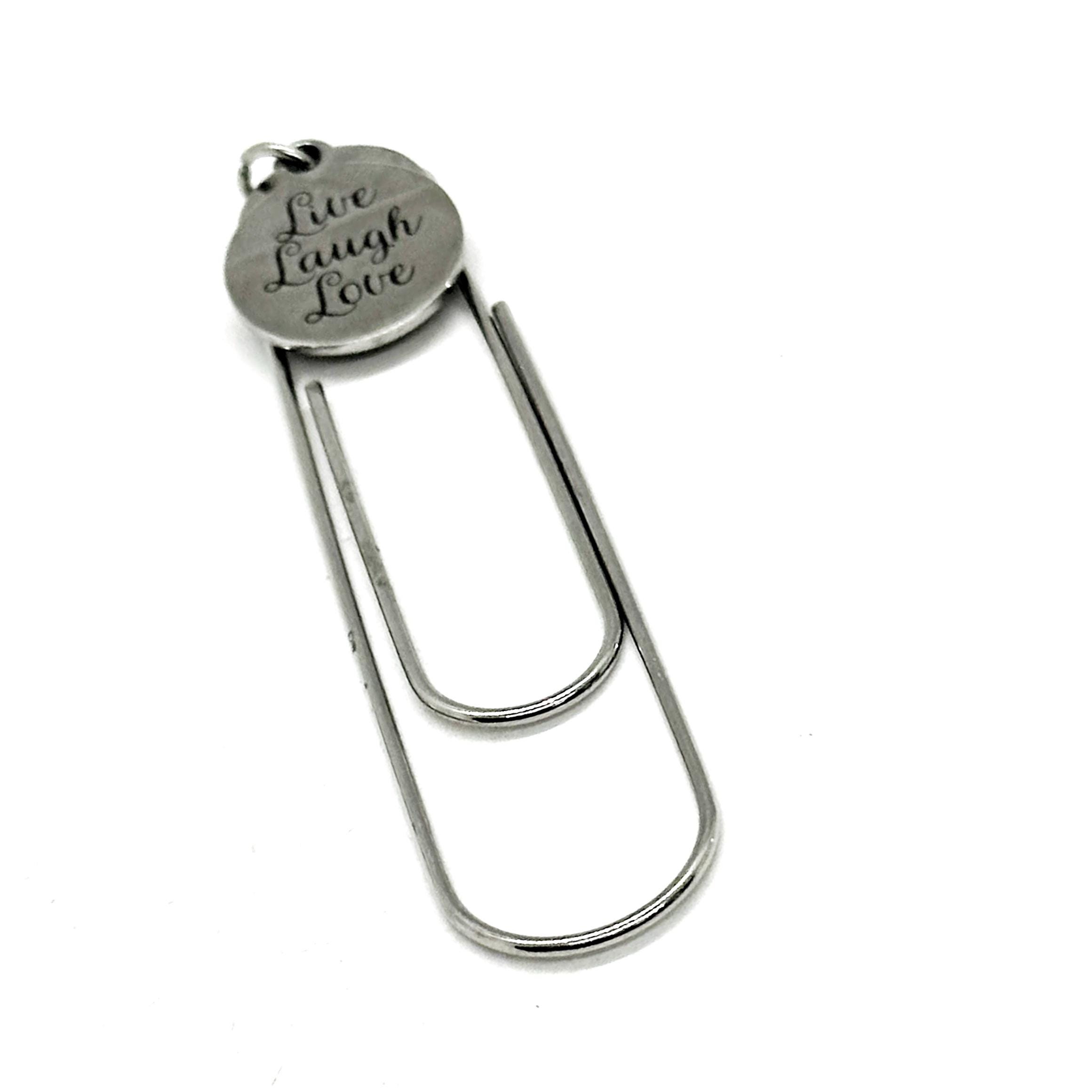 This bookmark has stainless steel laser engraved charm that has "Live Laugh Love" on it. It can be used as a bookmark, page marker, or planner book mark.