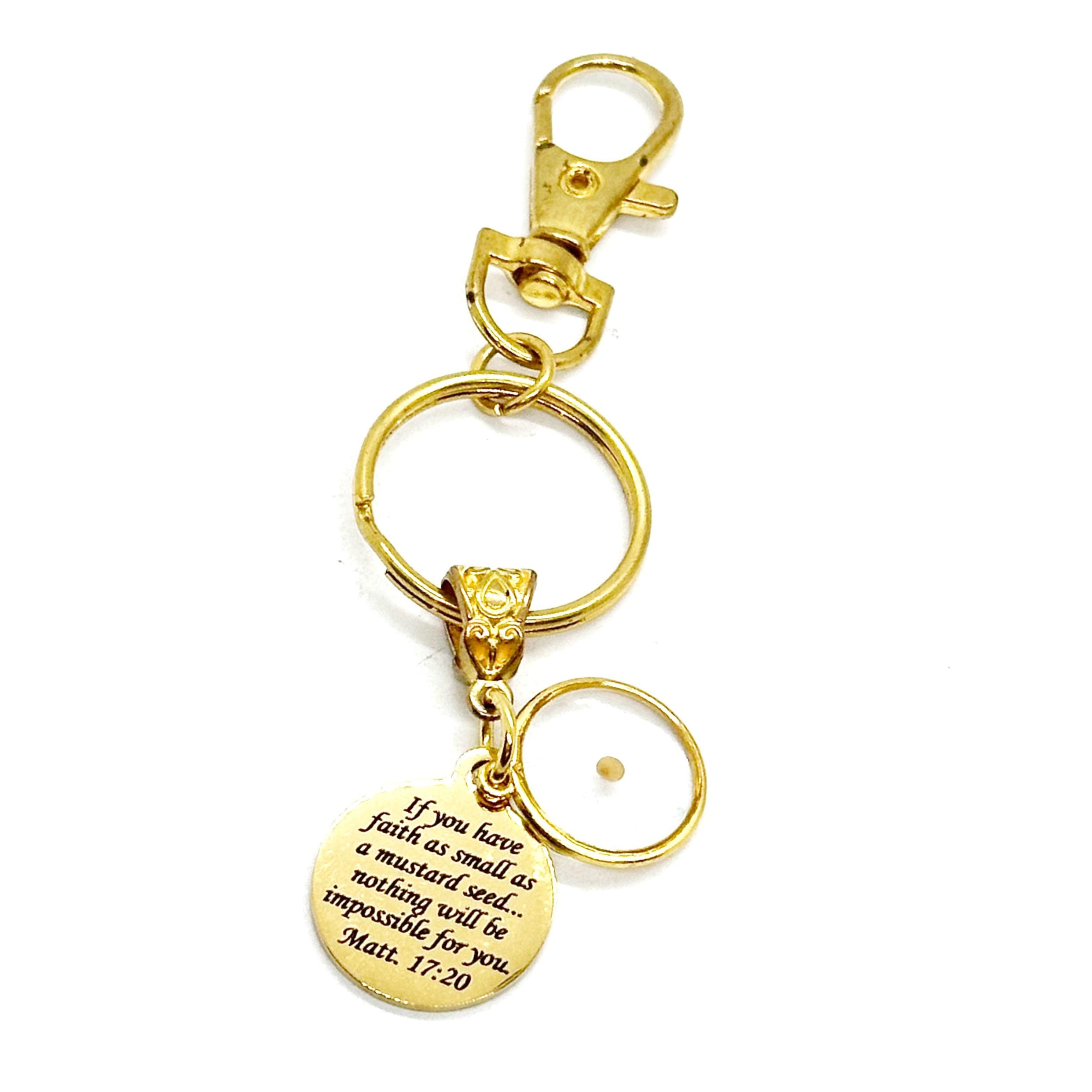Goldtone Mustard Seed Charm Key Chain, Mustard Seed Faith Gifts, Matthew 17 20 Gifts, Scripture Keychain, Baptism Gifts, Christian Gifts