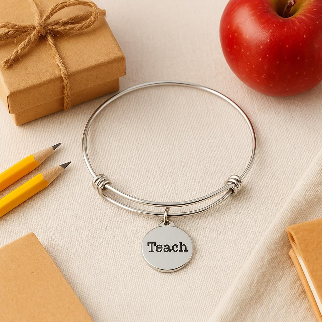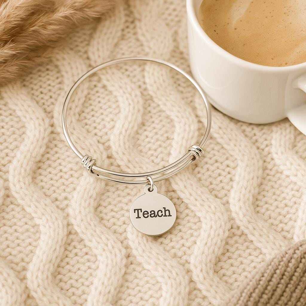 Teach Bracelet – Stainless Steel Round Charm Jewelry