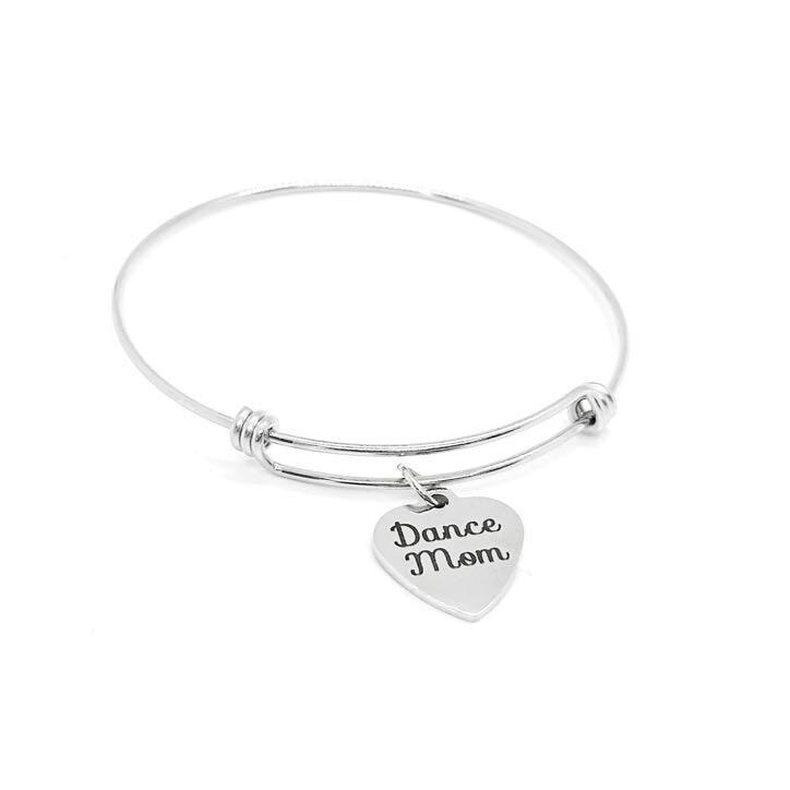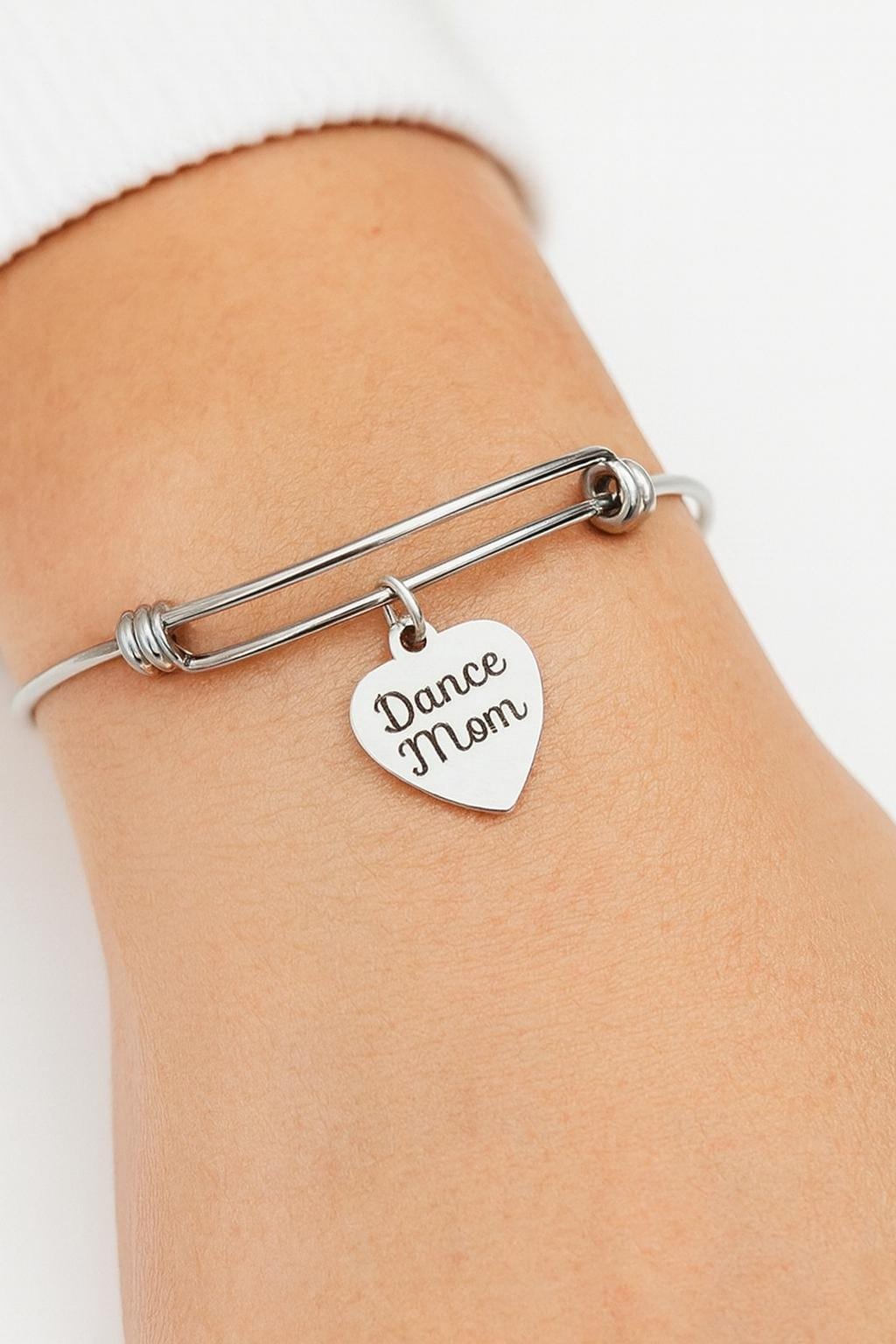 Celebrate the love and support of dance moms everywhere with this Dance Mom stainless steel bracelet. This adjustable bangle features a heart-shaped charm measuring approximately 19mm, engraved with the words "Dance Mom" in an elegant script. Made from durable stainless steel, it’s designed to be both stylish and long-lasting, making it the perfect everyday accessory.