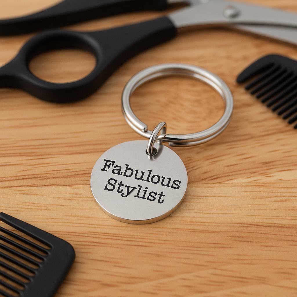Made from stainless steel, this keychain is built to last and makes a perfect gift for stylist appreciation, birthdays, holidays, or simply as a thank-you gesture. Lightweight and practical, it’s an accessory that can be carried daily as a reminder of their artistry and passion.