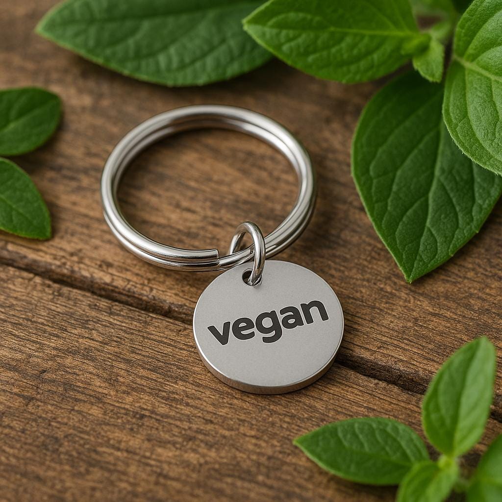 Show your plant-powered pride with this Vegan stainless steel keychain. The round charm measures approximately 19mm and is crafted from durable stainless steel for a sleek and long-lasting finish. Perfect for everyday use, this keychain makes a thoughtful gift for vegans, vegetarians, or anyone embracing a plant-based lifestyle. Carry your values with you wherever you go with this simple yet meaningful accessory.