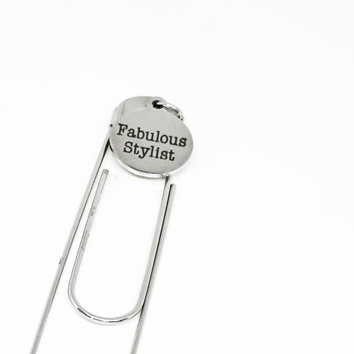 Celebrate your creativity and style with this Fabulous Stylist stainless steel paperclip bookmark from JKCE Designs. The elegant, engraved charm measures approximately 19mm and adds a polished touch to your reading, journaling, or planner pages. Perfect for hairstylists, barbers, and salon professionals, this durable silver-tone bookmark is a meaningful way to show pride in your craft or gift to a stylist who inspires you. Each piece is beautifully crafted and ready to brighten someone’s day with a reminder of how truly fabulous they are.