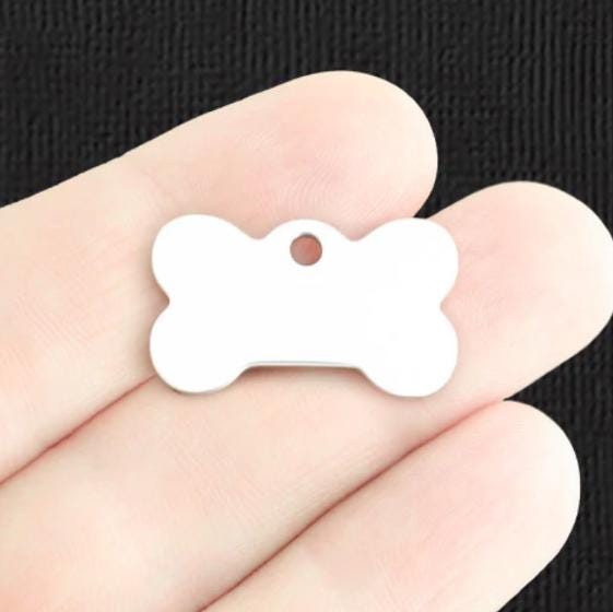 This charm features a bone-shaped stainless steel pendant engraved with the phrase: