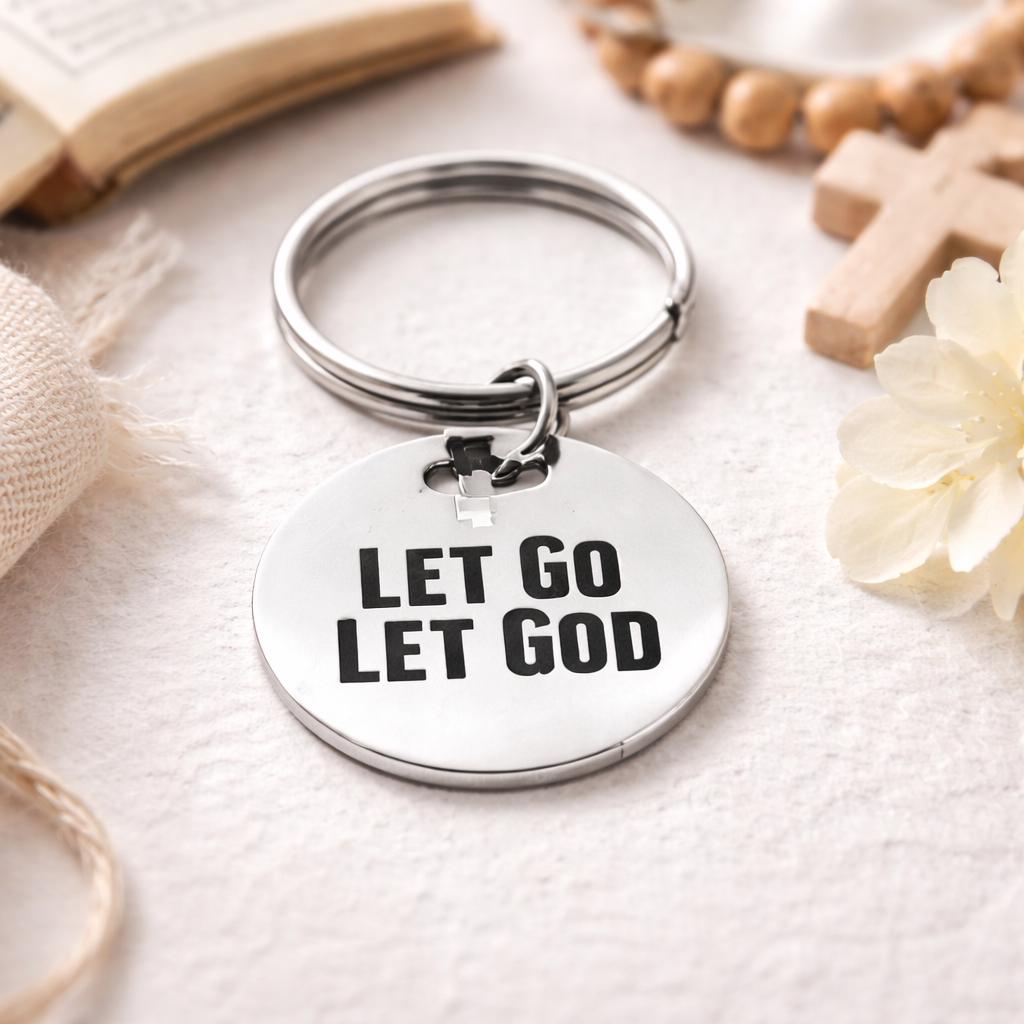 Let Go Let God Faith Keychain Christian Gift Inspirational Religious Stainless Steel Engraved Charm Keyring