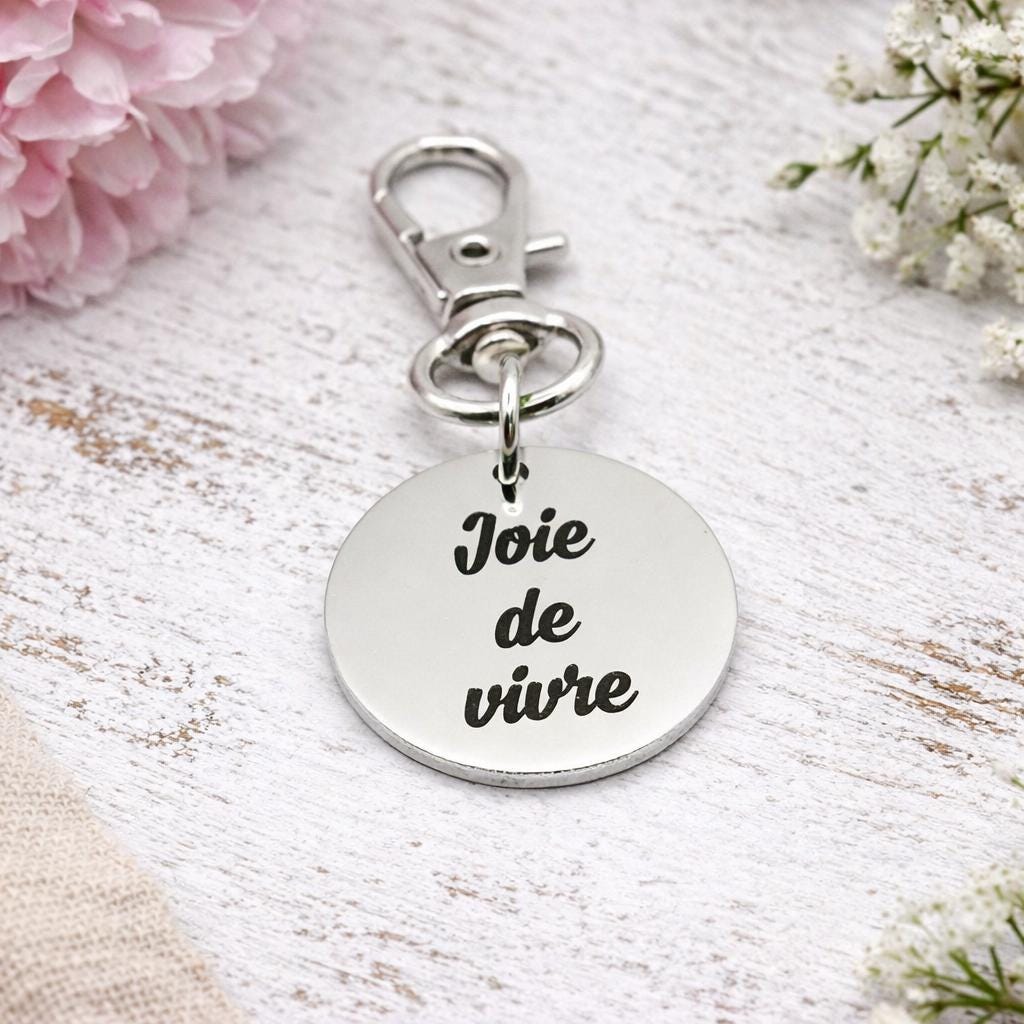 Crafted from durable stainless steel, this round charm is engraved with the beautiful French phrase: