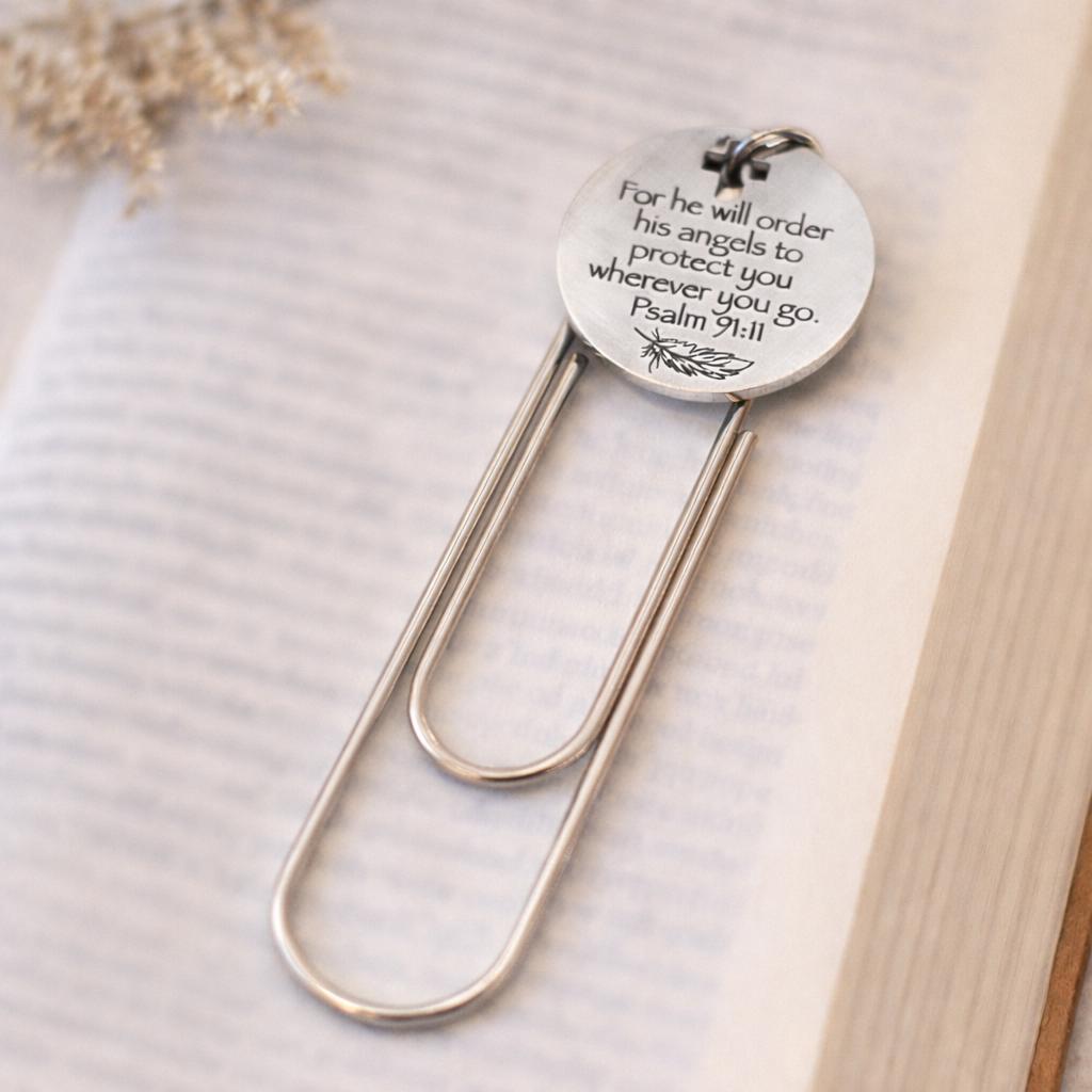 Mark your place with faith and encouragement using this meaningful Psalm 91:11 paperclip bookmark from JKCE Designs.