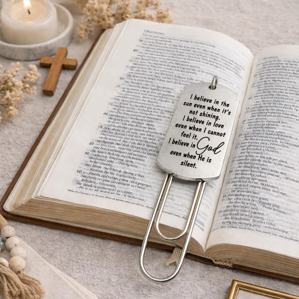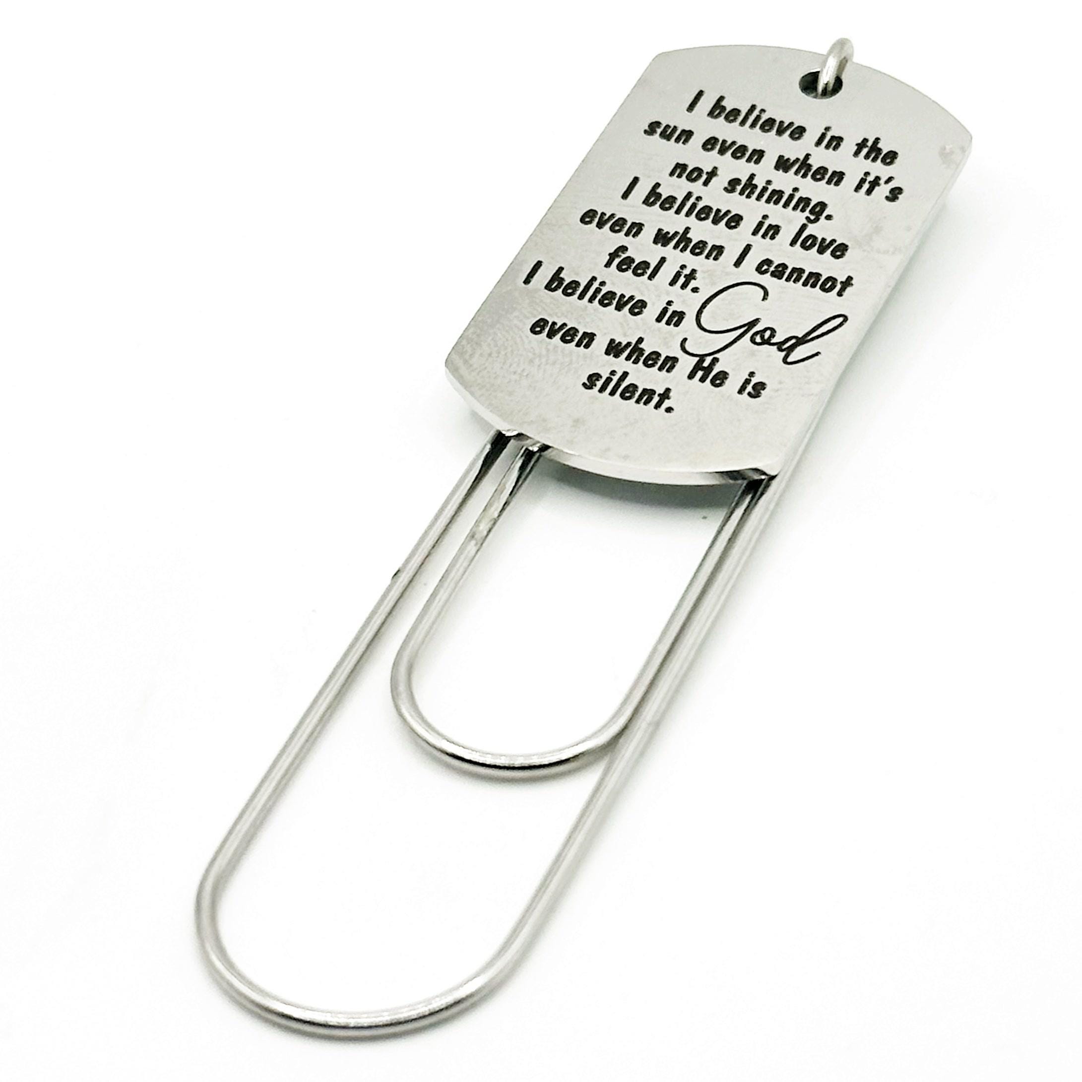 Mark your place with faith and encouragement. This elegant paperclip bookmark from JKCE Designs features a stainless steel engraved charm with a powerful message of hope and trust, perfect for daily devotionals, Bible study, or meaningful reading moments.